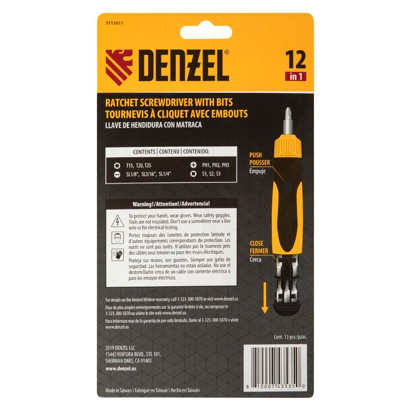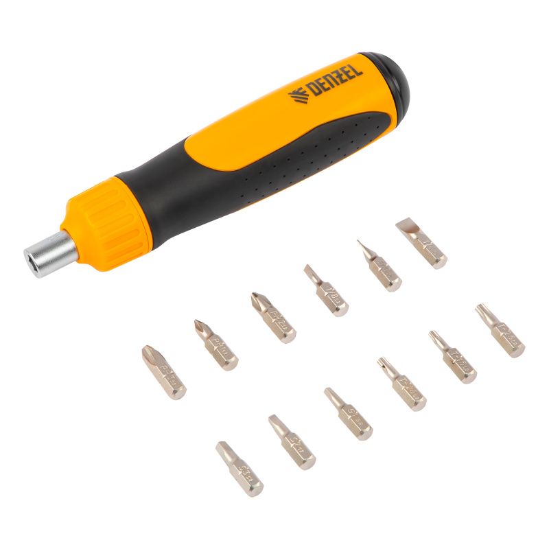Отвертка реверсивная, механизм SmartPush 12 шт, S2 Denzel, 7711611