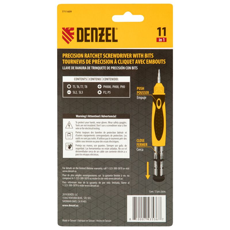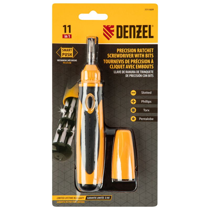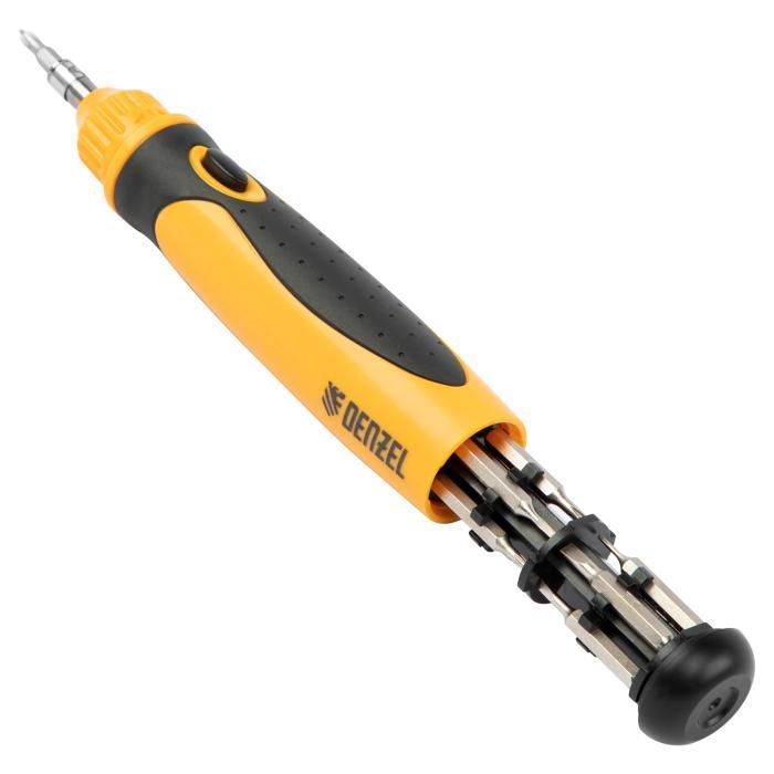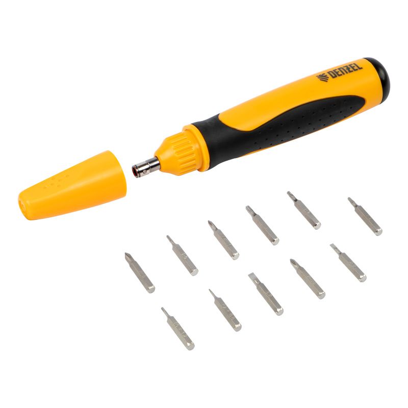 Отвертка реверсивная, механизм SmartPush mini 11 шт, CrMo Denzel, 7711609