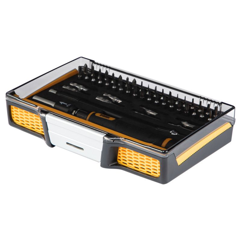 биты sl, ph, pz, tr, tt, hex - 48 штотвертка - 1 штгибкий привод - 1 штпластиковый кейс - 1 шт