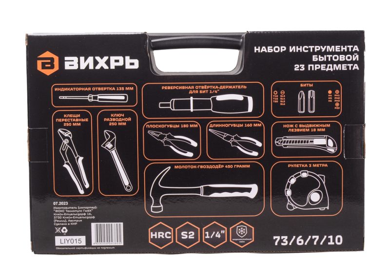 Набор инструмента Вихрь бытовой, в кейсе 23 предмета, 73/6/7/10