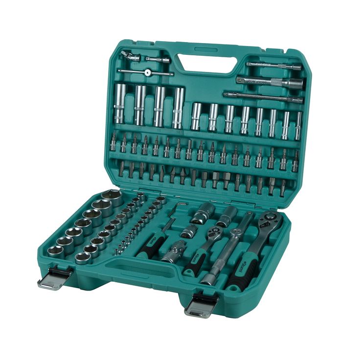 | Комплектация* | 18 х Головки торцевые 1/2": 10, 11, 12, 13, 14, 15, 16, 17, 18, 19, 20, 21, 22, 23, 24, 27, 30, 32 мм; 4 x Головки торцевые удлиненные 1/2": 14, 15, 17, 19 мм; 2 х Головки торцевые свечные 1/2": 16, 21 мм; 1 х Рукоятка трещоточная 1/2", 72 зуба; 1 х Шарнир карданный 1/2"; 2 х Удлинитель 1/2": 125, 250 мм; 1 х Вороток-удлинитель Т-образный 1/2"; 1 х Держатель бит 1/2" x 5/16"; 15 х Биты 5/16", 30 мм: TORX: T40, T45, T50, T55; SLOTTED: SL4, SL5.5, SL7; HEX: H8, H10, H12, H14; PHILIPS: PH3, PH4; POZIDRIV: PZ3, PZ4; 13 х Головки торцевые 1/4": 4, 4, 5, 5, 5, 5, 6, 7, 8, 9, 10, 11, 12, 13, 14 мм; 8 х Головки торцевые удлиненные 1/4": 6, 7, 8, 9, 10, 11, 12, 13 мм; 1 х Адаптер для торцевых головок 1/4"; 1 х Рукоятка трещоточная 1/4", 72 зуба; 1 х Шарнир карданный 1/4"; 2 х Удлинитель 1/4": 50, 100 мм; 1 x Вороток Т-образный 1/4", 115 мм; 1 x Удлинитель гибкий 1/4", 150 мм; 1 х Отвертка-вороток 1/4", 150 мм; 3 х Ключи шестигранные: 1, 5, 2, 2, 5 мм; 17 х Головки с вставками 1/4": TORX: T8, T10, T15, T20, T25, T30; SLOTT, 18 х Головки торцевые 1/2": 10, 11, 12, 13, 14, 15, 16, 17, 18, 19, 20, 21, 22, 23, 24, 27, 30, 32 мм; 4 x Головки торцевые удлиненные 1/2": 14, 15, 17, 19 мм; 2 х Головки торцевые свечные 1/2": 16, 21 мм; 1 х Рукоятка трещоточная 1/2", 72 зуба; 1 х Шарнир карданный 1/2"; 2 х Удлинитель 1/2": 125, 250 мм; 1 х Вороток-удлинитель Т-образный 1/2"; 1 х Держатель бит 1/2" x 5/16"; 15 х Биты 5/16", 30 мм: TORX: T40, T45, T50, T55; SLOTTED: SL4, SL5.5, SL7; HEX: H8, H10, H12, H14; PHILIPS: PH3, PH4; POZIDRIV: PZ3, PZ4; 13 х Головки торцевые 1/4": 4, 4, 5, 5, 5, 5, 6, 7, 8, 9, 10, 11, 12, 13, 14 мм; 8 х Головки торцевые удлиненные 1/4": 6, 7, 8, 9, 10, 11, 12, 13 мм; 1 х Адаптер для торцевых головок 1/4"; 1 х Рукоятка трещоточная 1/4", 72 зуба; 1 х Шарнир карданный 1/4"; 2 х Удлинитель 1/4": 50, 100 мм; 1 x Вороток Т-образный 1/4", 115 мм; 1 x Удлинитель гибкий 1/4", 150 мм; 1 х Отвертка-вороток 1/4", 150 мм; 3 х Ключи шестигранные: 1, 5, 2, 2, 5 мм; 17 х Головки с вставками 1/4": TORX: T8, T10, T15, T20, T25, T30; SLOTT |