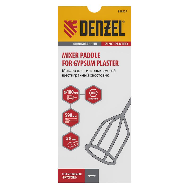 Миксер для гипсовых смесей Denzel 100 х 590 мм, 848427