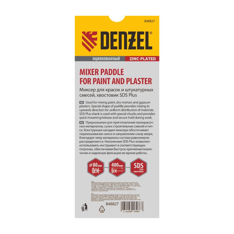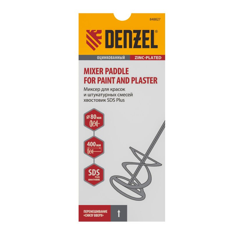 Миксер для красок и штукатурных смесей Denzel 80 х 400 мм, 848827