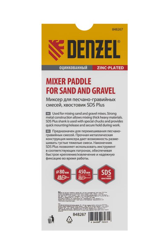 Миксер для песчано-гравийных смесей Denzel 80 х 450 мм, 848267