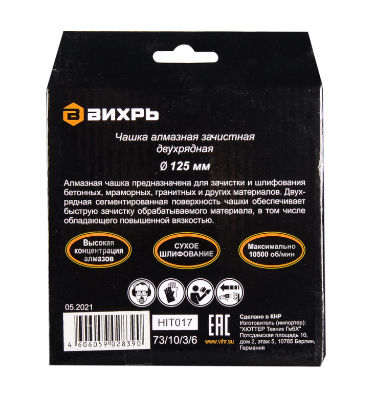 Чашка алмазная зачистная, 125 мм, двухрядная Вихрь, 73/10/3/6