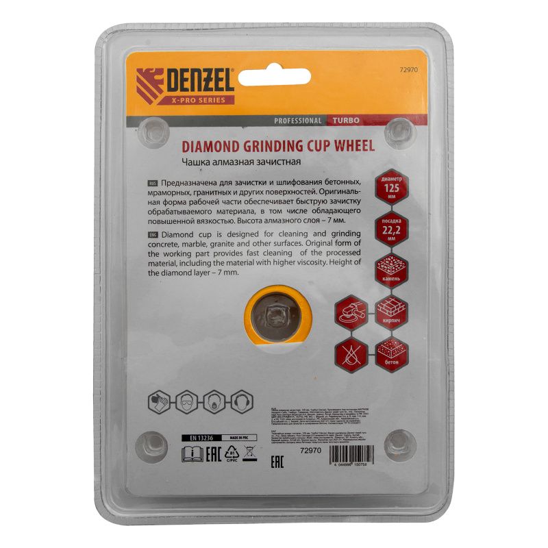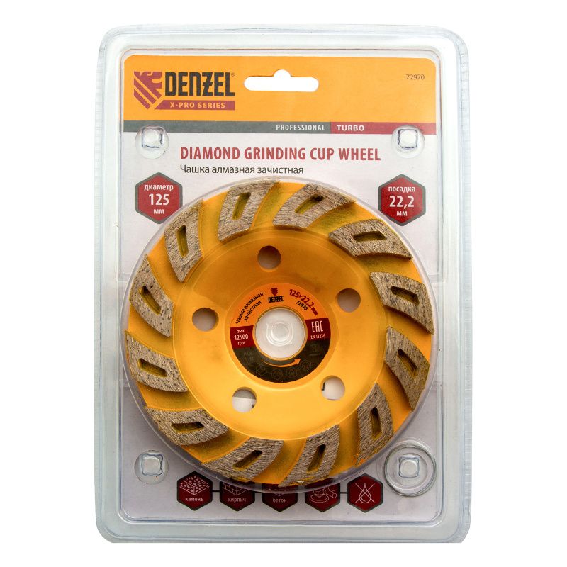 Чашка алмазная зачистная, 125 мм, Турбо Denzel, 72970