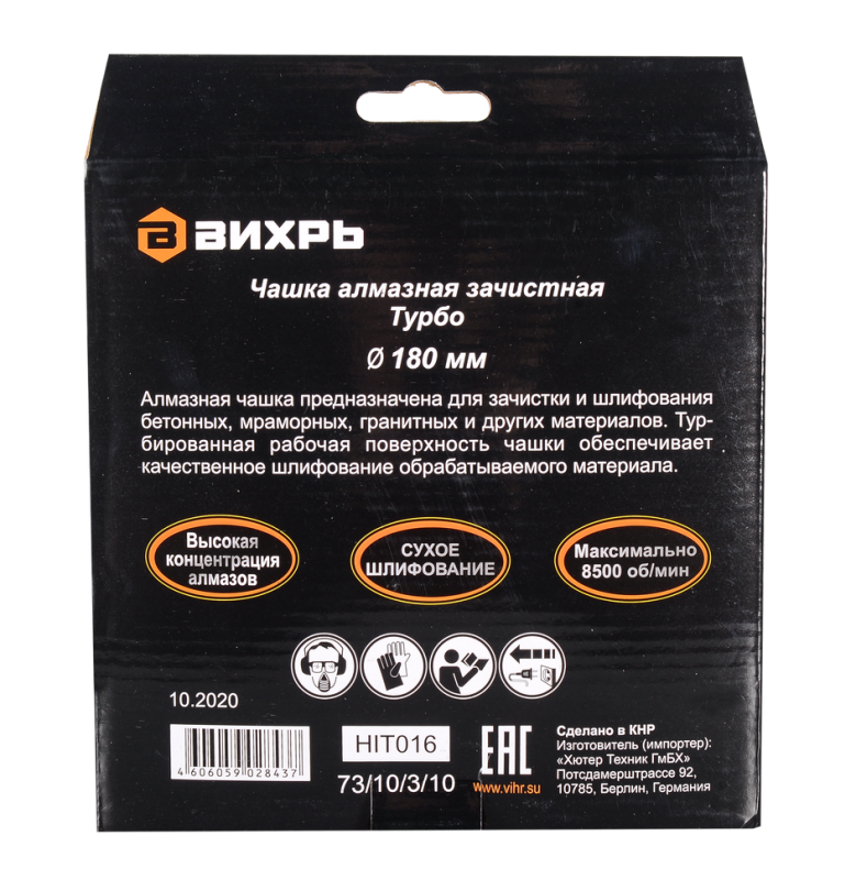 | Модель | Чашка алмазная зачистная, 180 мм, Турбо |