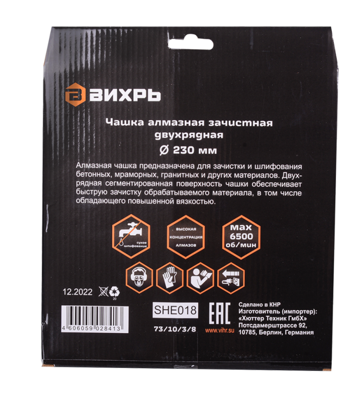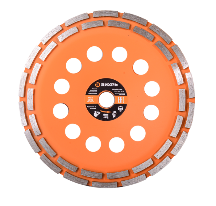 Чашка алмазная зачистная, 230 мм, двухрядная Вихрь, 73/10/3/8