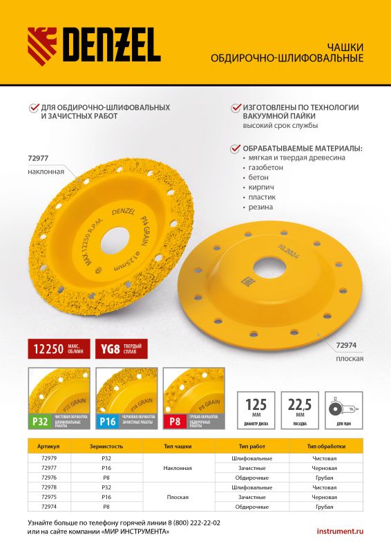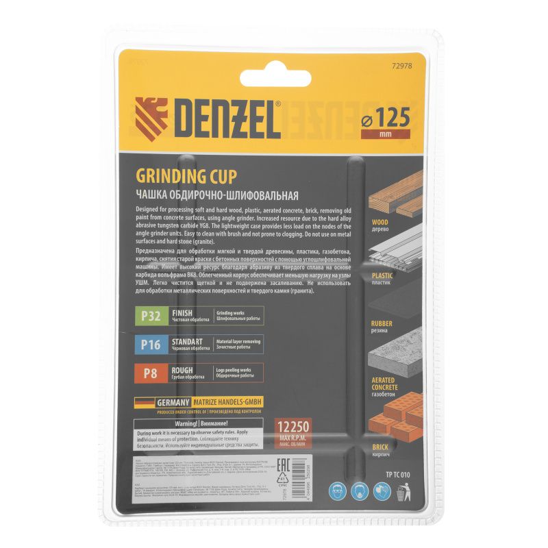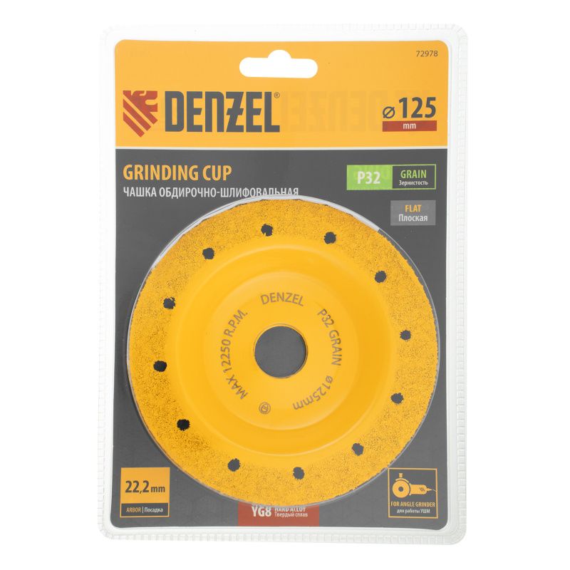 Чашка твёрдосплавная зачистная Denzel,125 мм, плоская, мелкое зерно #32, 72978