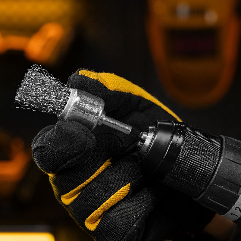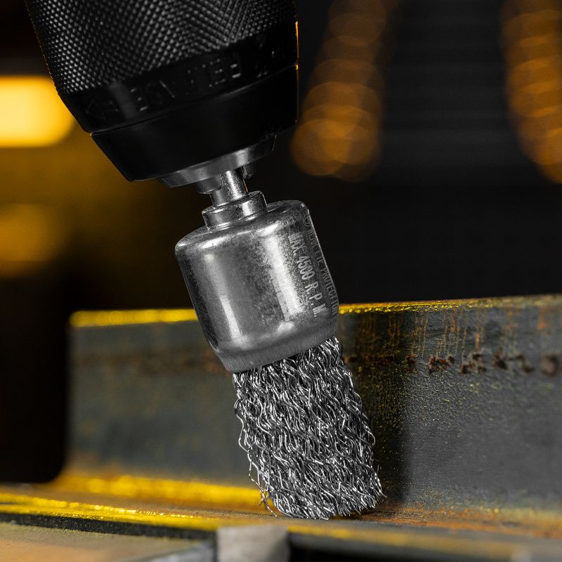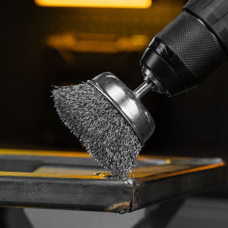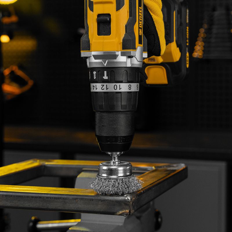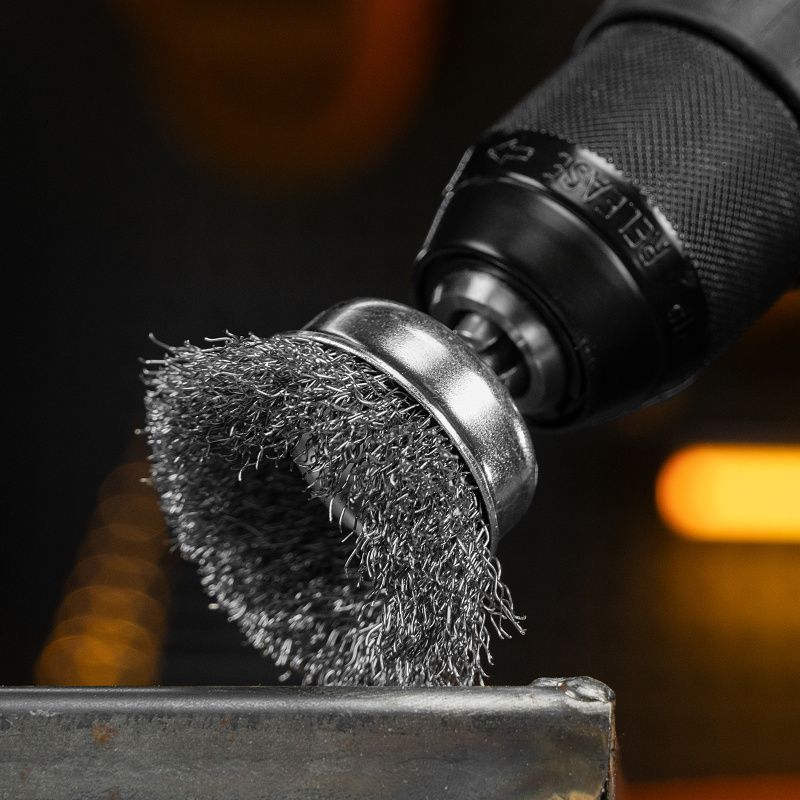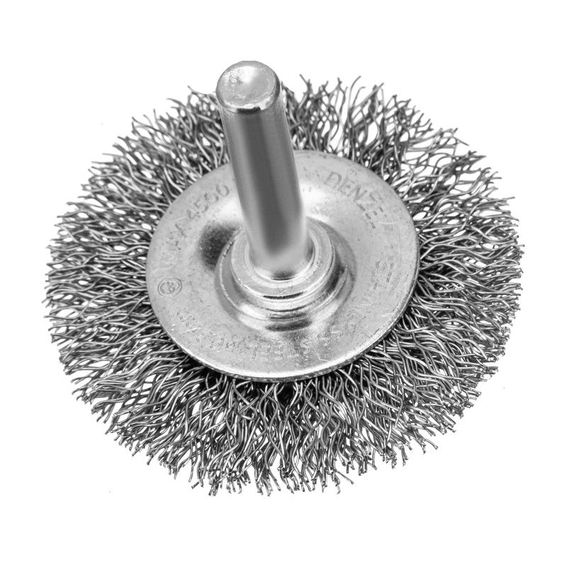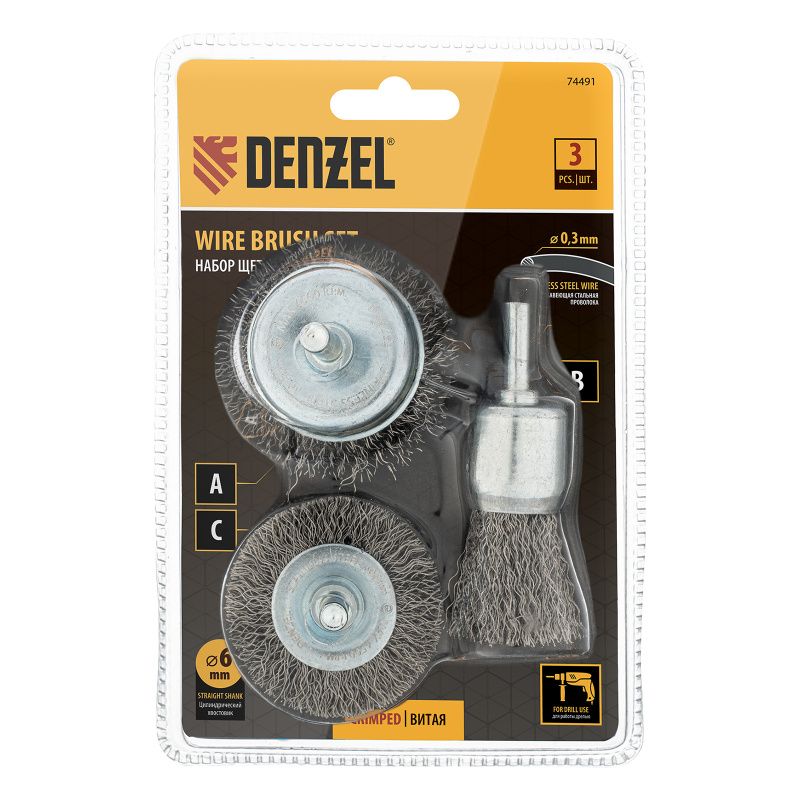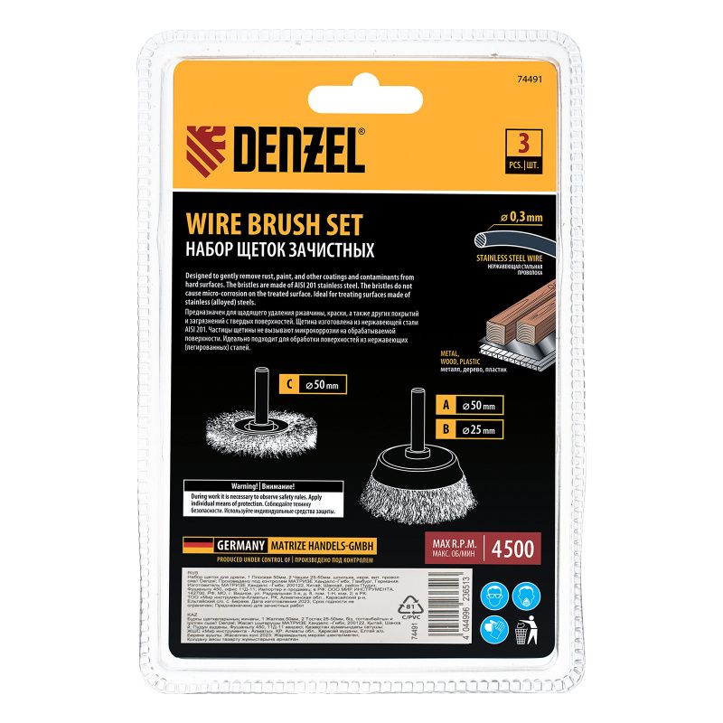 Набор щеток для дрели, 1 Плоская 50мм, 2 Чашки 25-50мм, шпилька, нерж. вит. проволока Denzel, 74491