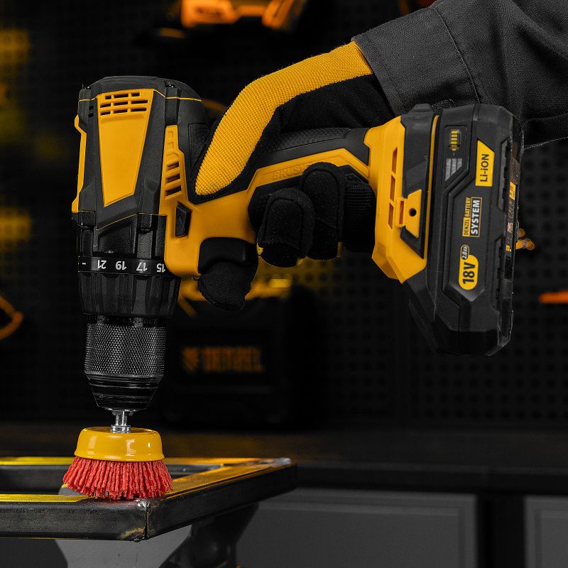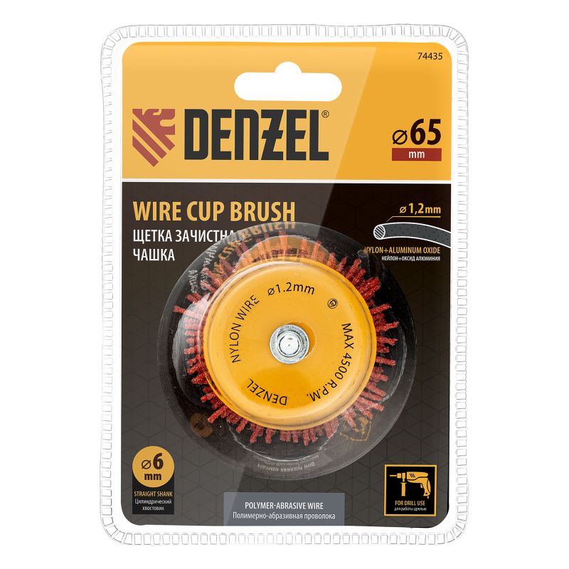 Щетка для дрели, 65 мм, Чашка, со шпилькой, нейлоновая щетина Denzel, 74435