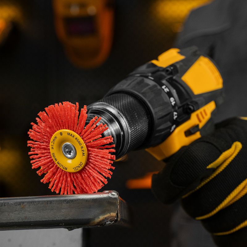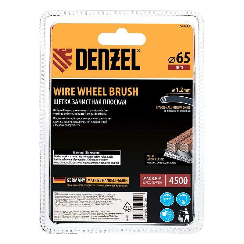 Щетка для дрели, 65 мм, Плоская, со шпилькой, нейлоновая щетина Denzel, 74433