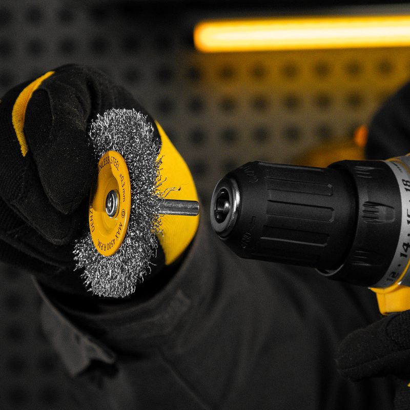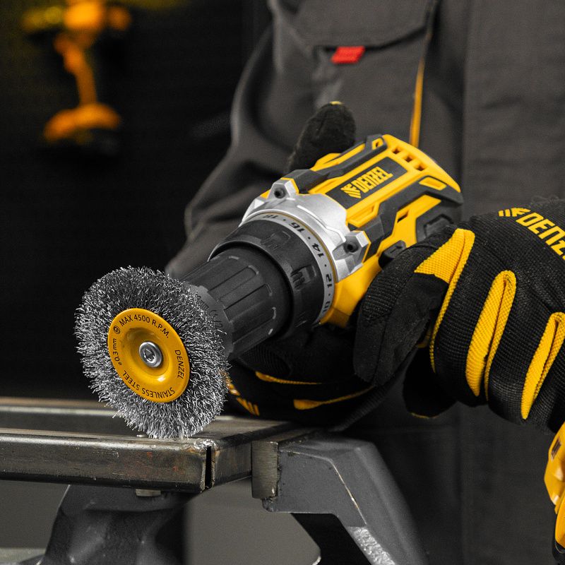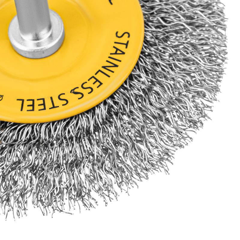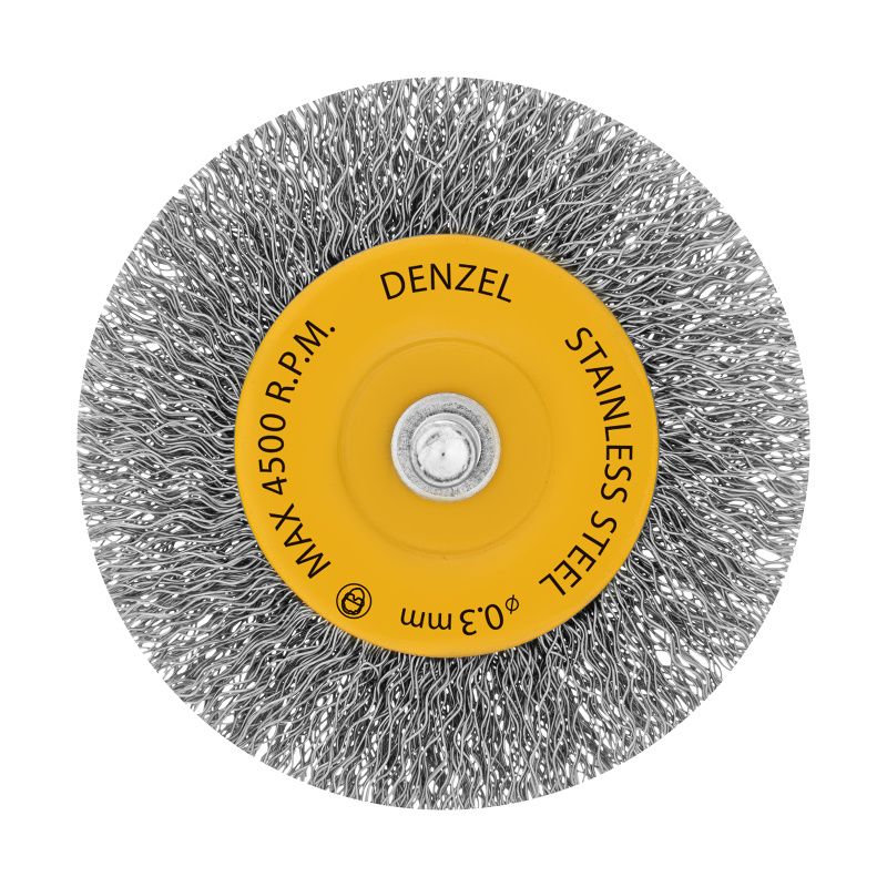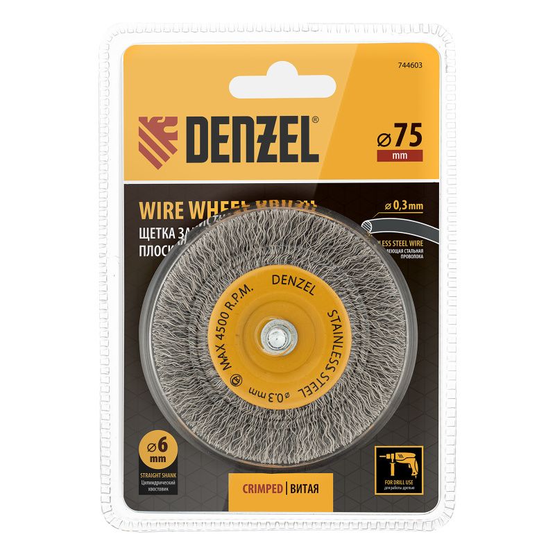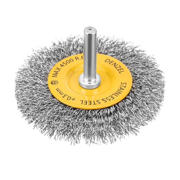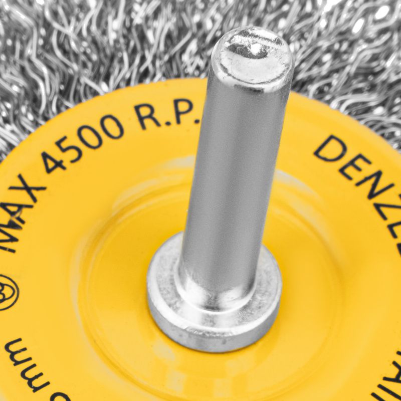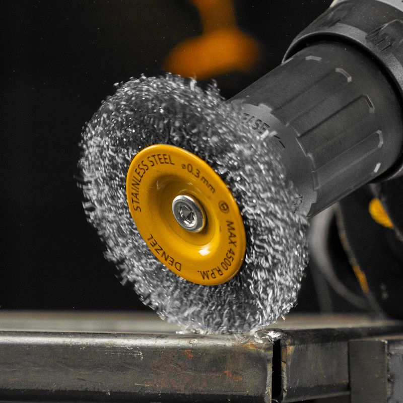 Щетка для дрели, 75 мм, Плоская, со шпилькой, нержавеющая витая проволока Denzel, 744603