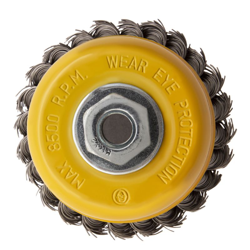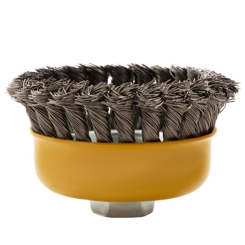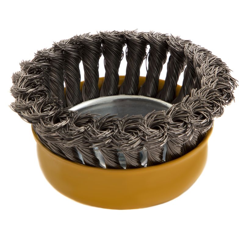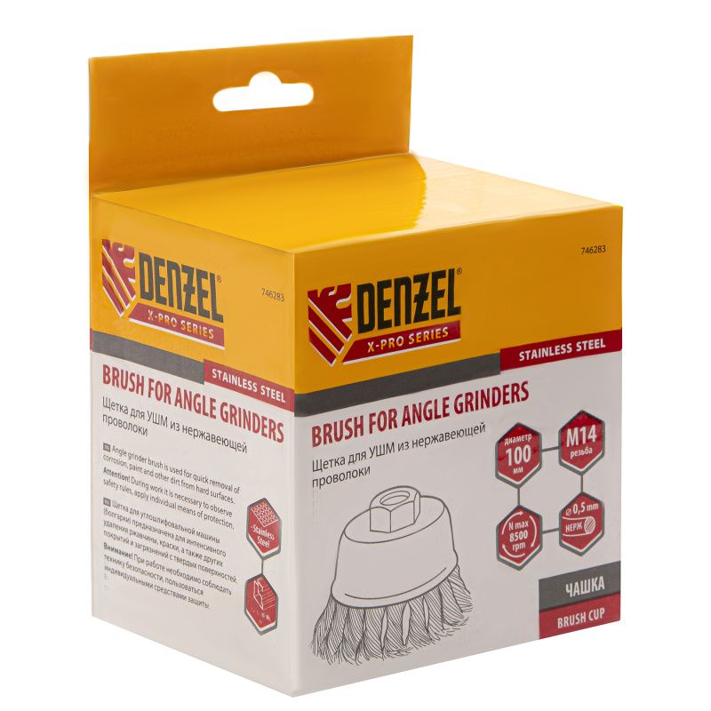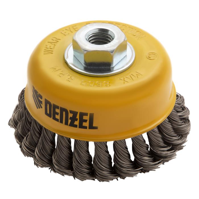 Щетка для УШМ, 100 мм, "Чашка", крученая нержавеющая проволока 0.5 мм, М14 Denzel, 746283