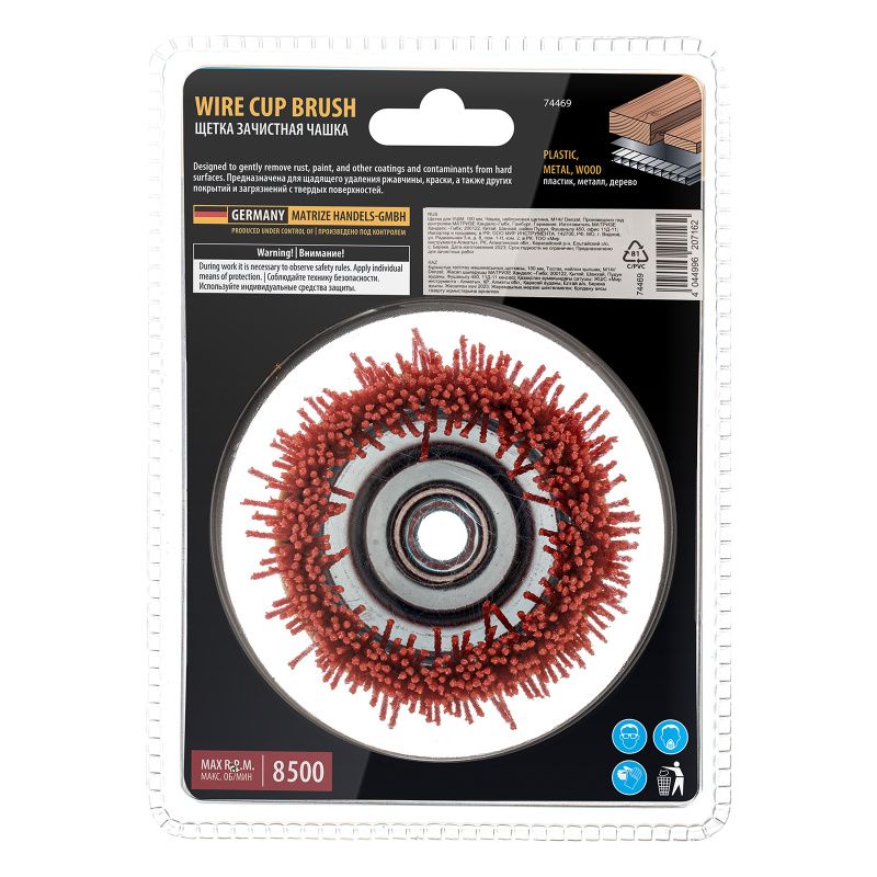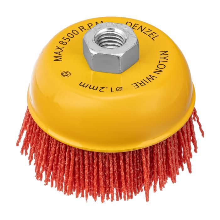 Щетка для УШМ, 100 мм, Чашка, нейлоновая щетина, М14 Denzel, 74469