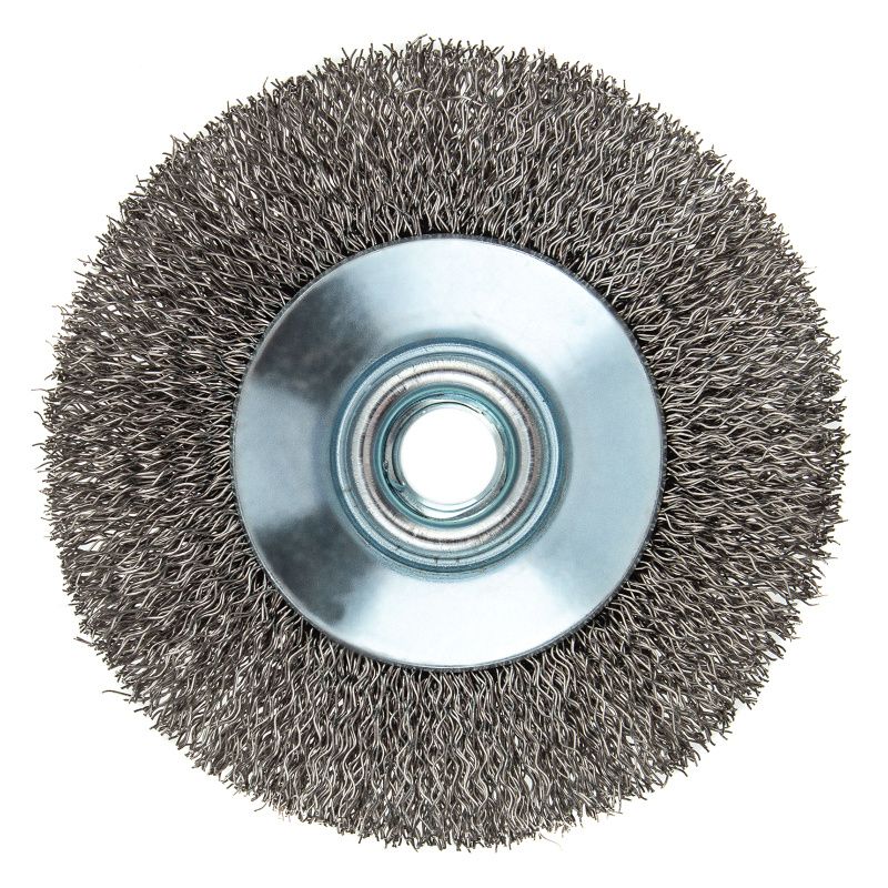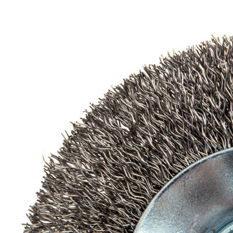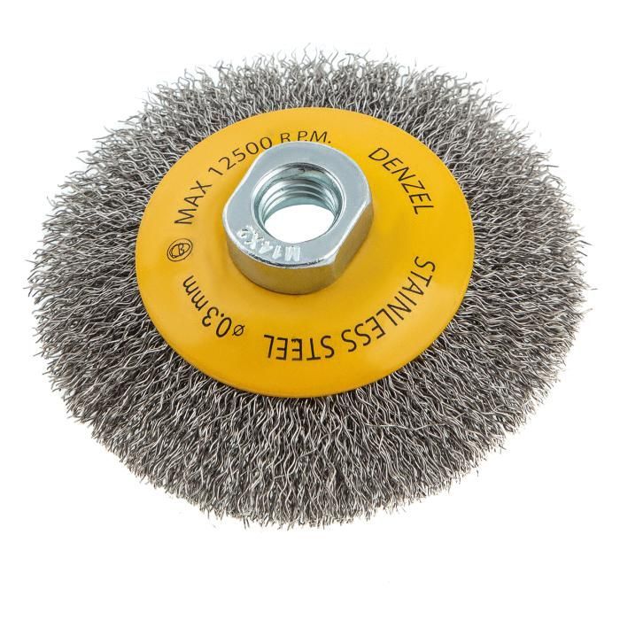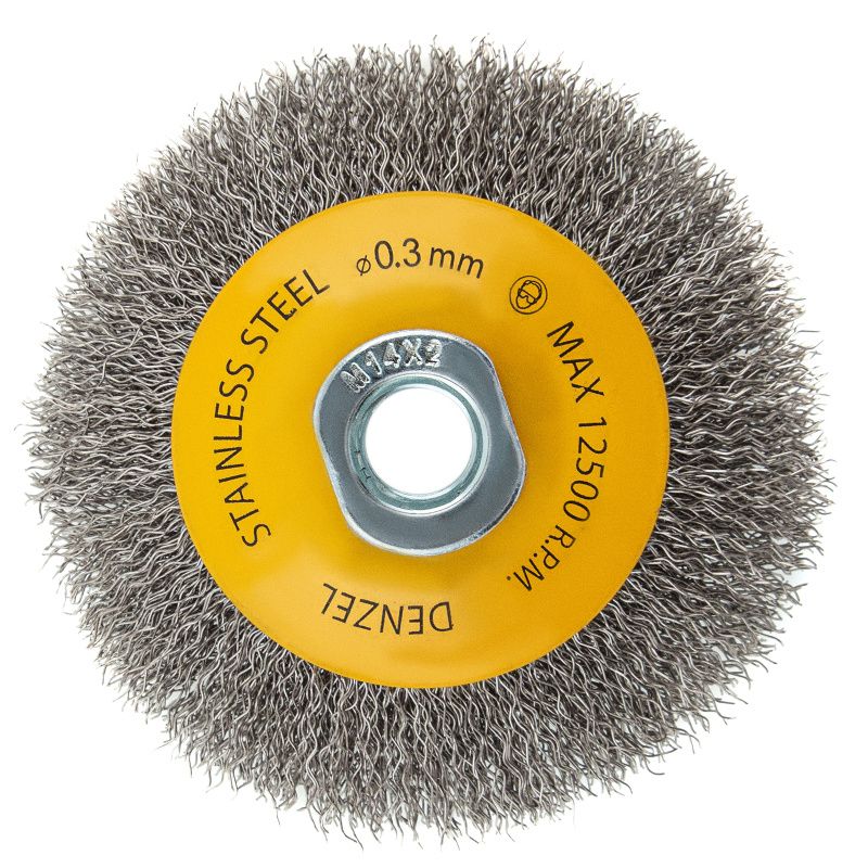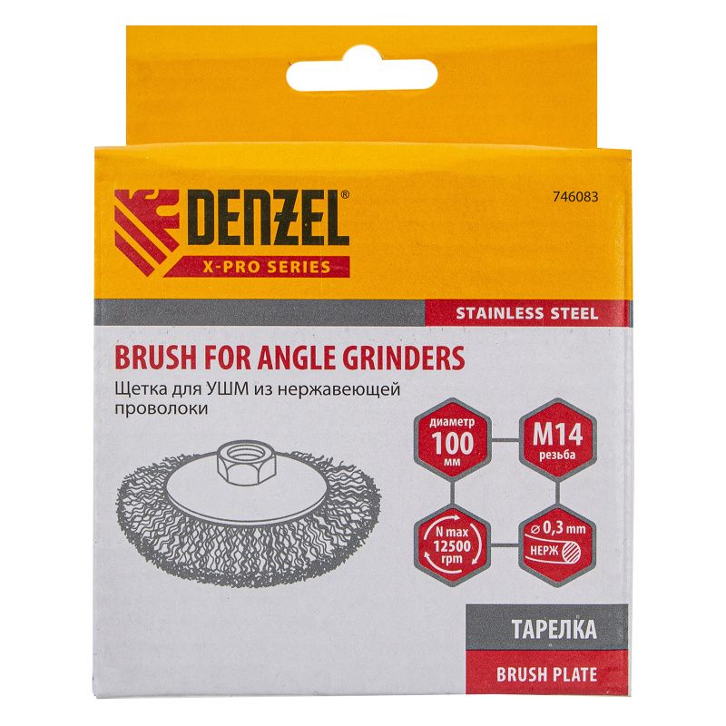 Щетка для УШМ, 100 мм, "Тарелка", витая нержавеющая проволока 0.3 мм, М14 Denzel, 746083