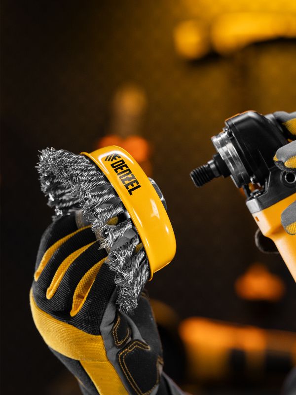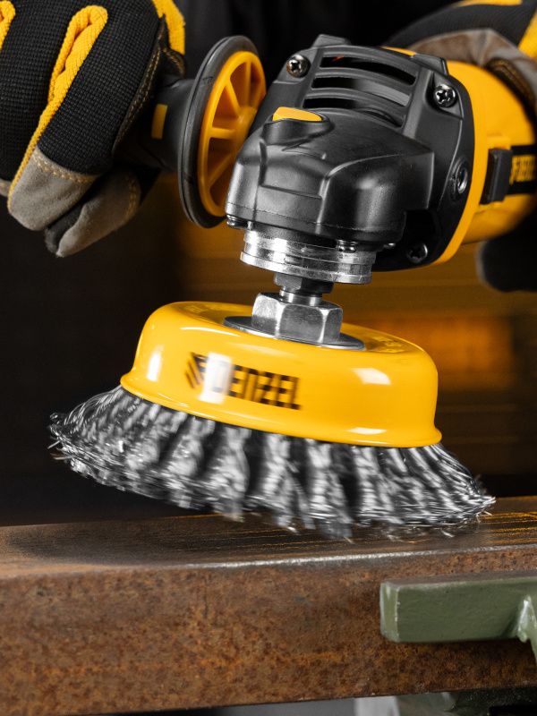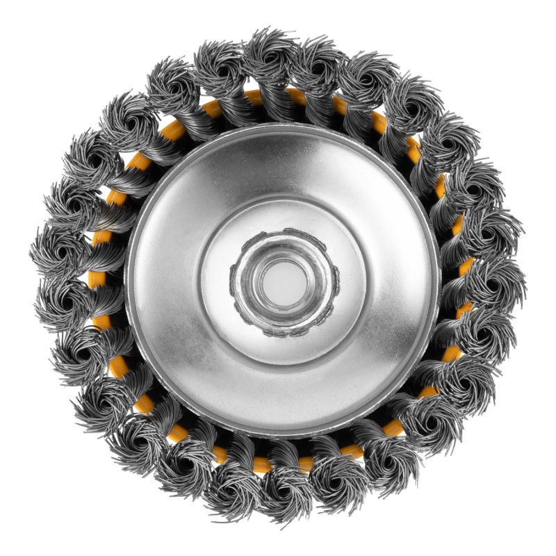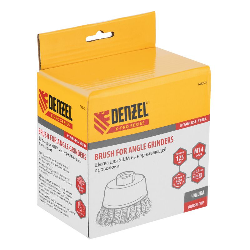 Щетка для УШМ, 125 мм, "Чашка", крученая нержавеющая проволока 0.5 мм, М14 Denzel, 746273
