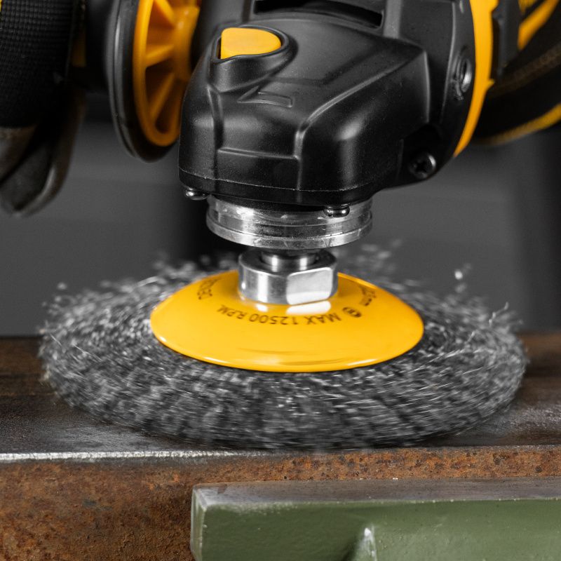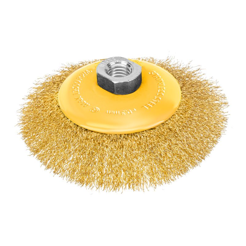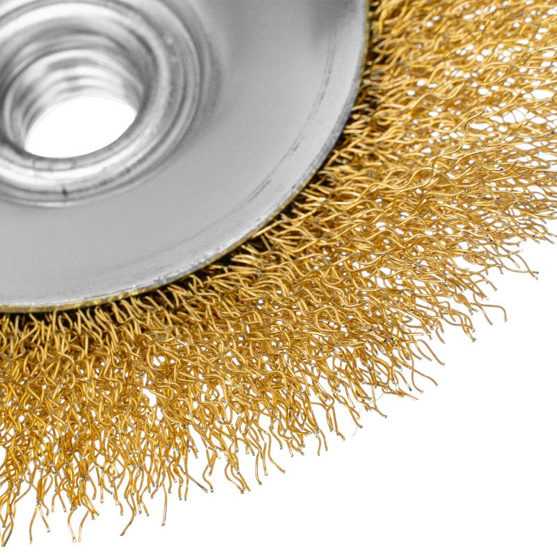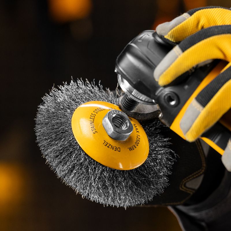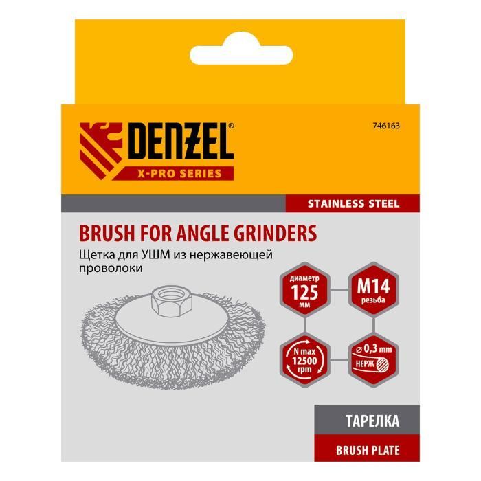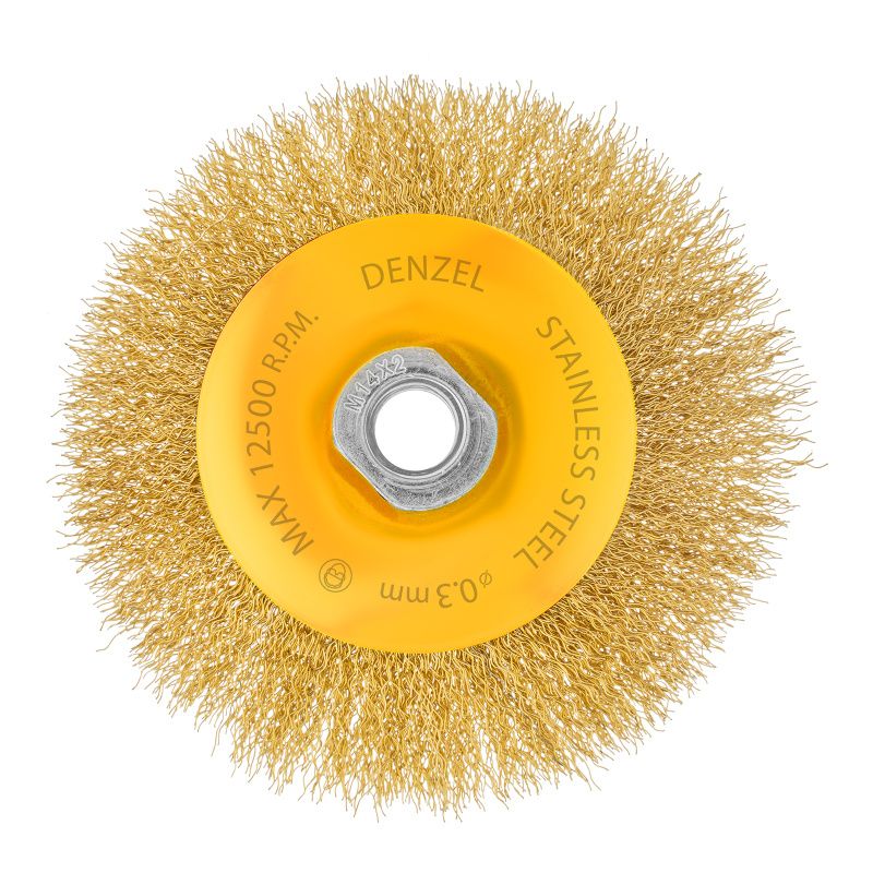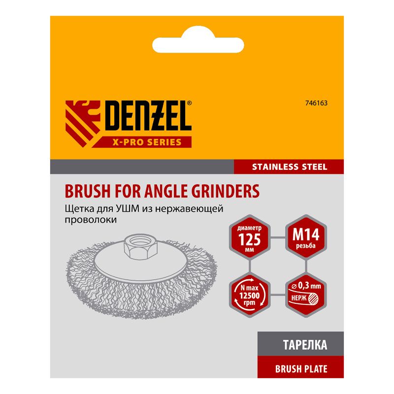 Щетка для УШМ, 125 мм, "Тарелка", витая нержавеющая проволока 0.3 мм, М14 Denzel, 746163