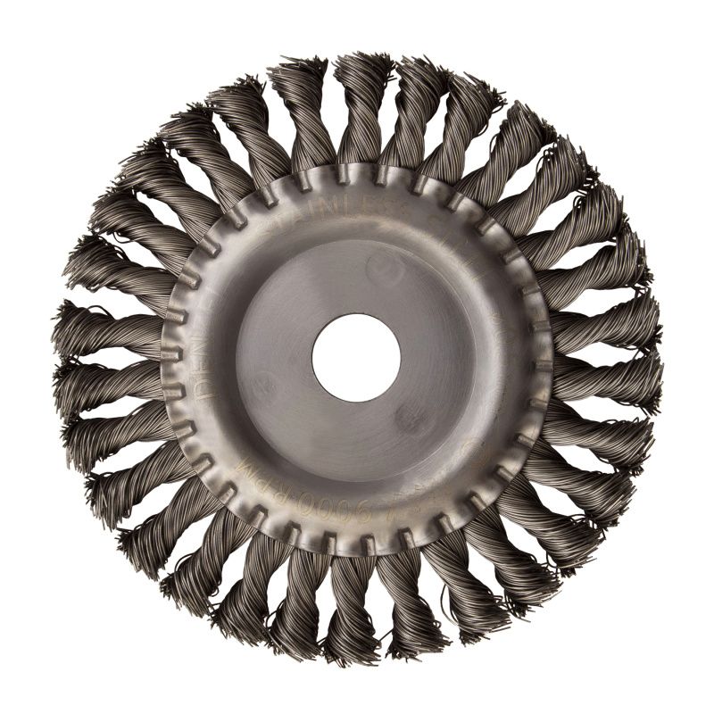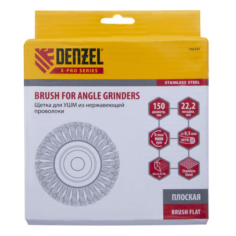 Щетка для УШМ, 150 мм, "Плоская", крученая нержавеющая проволока 0.5мм, посадка 22.2 мм Denzel, 746343