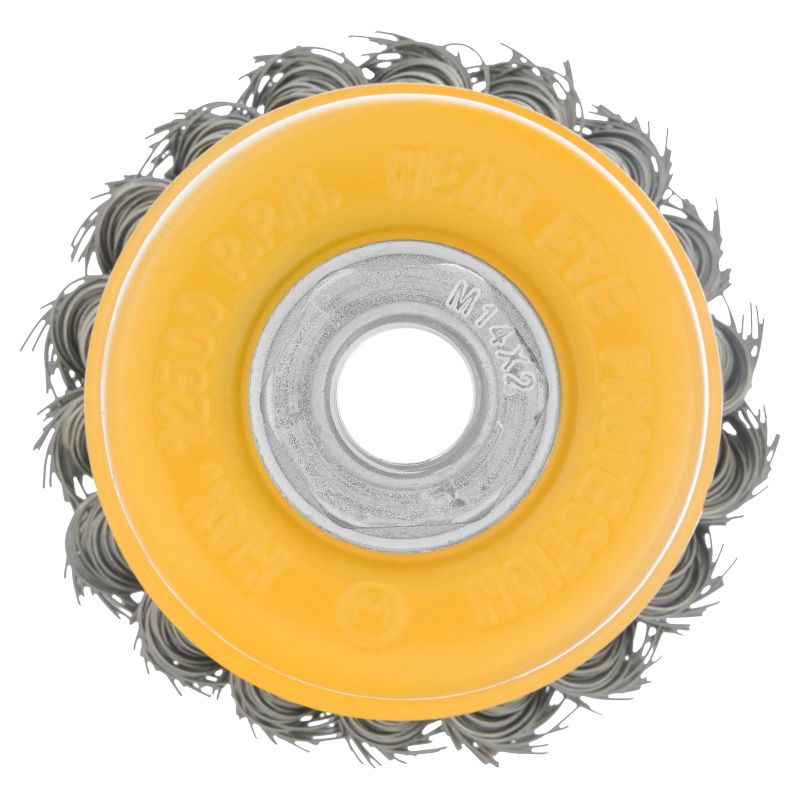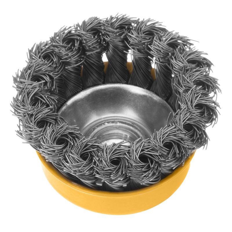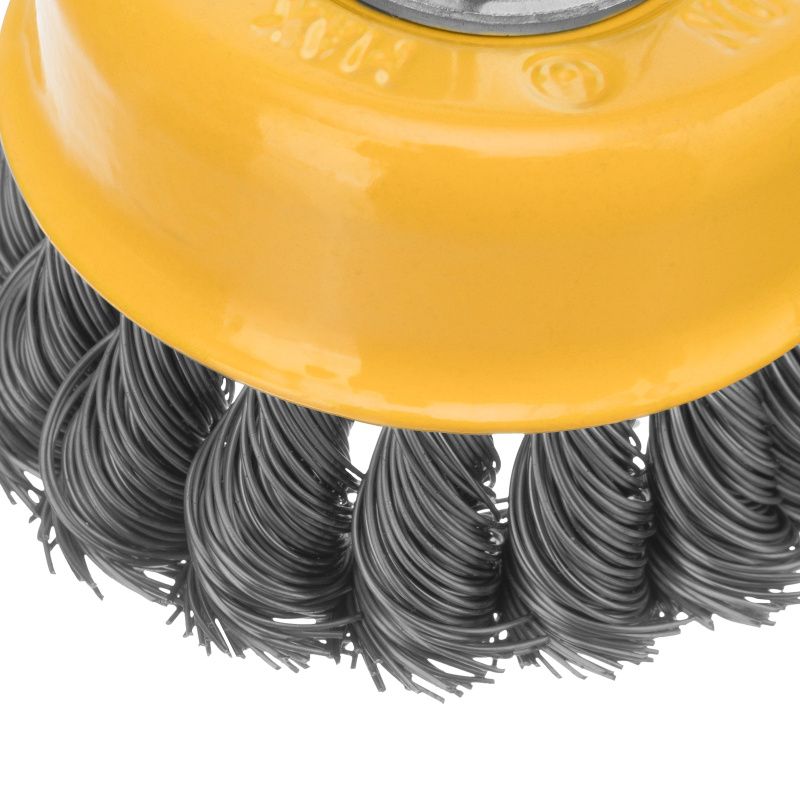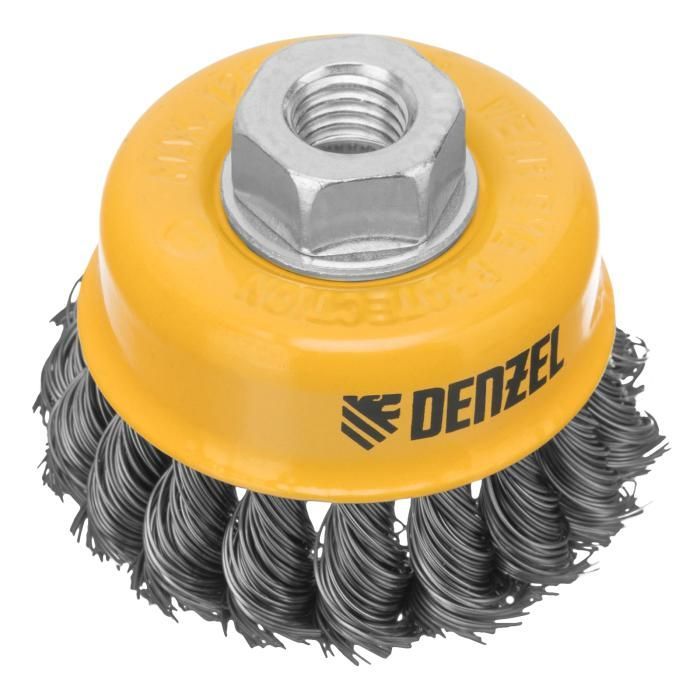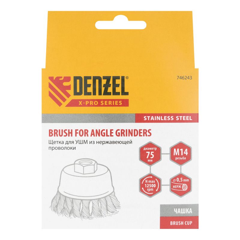 Щетка для УШМ, 75 мм, "Чашка", крученая нержавеющая проволока 0.5 мм, М14 Denzel, 746243