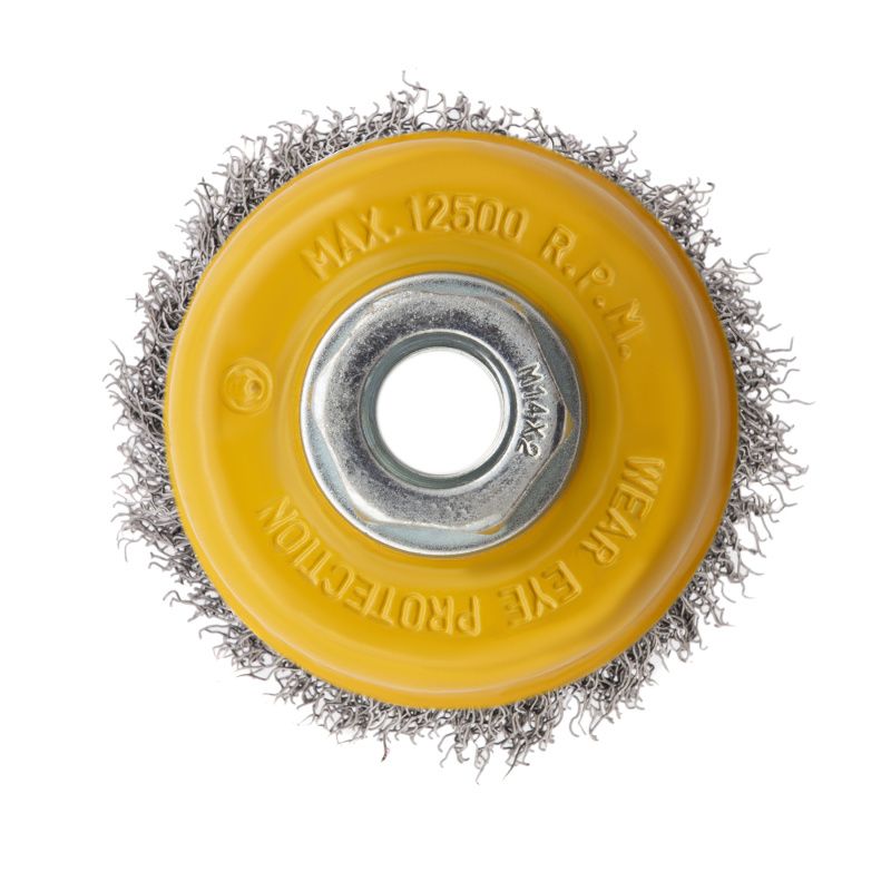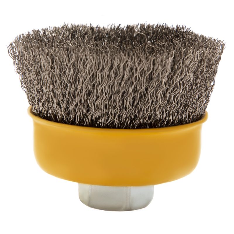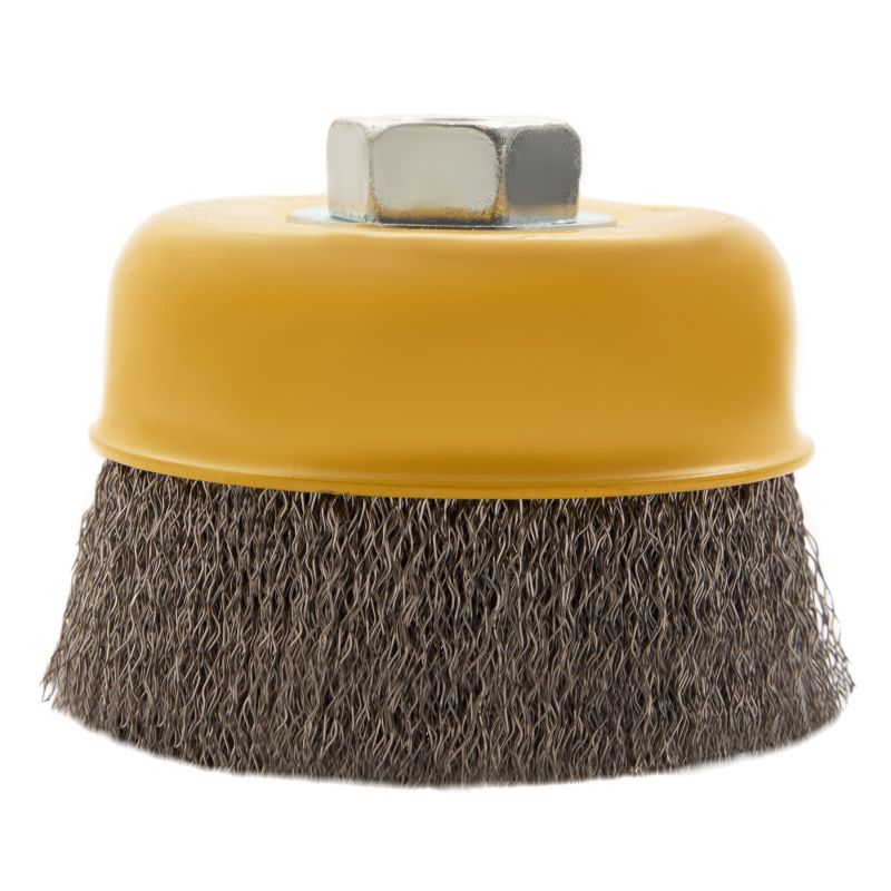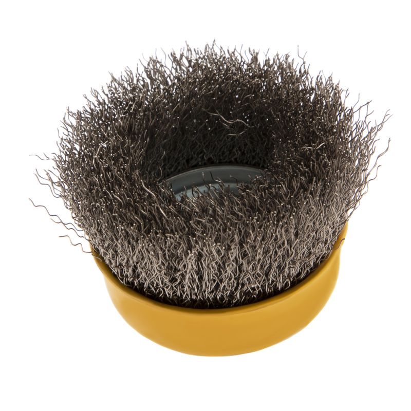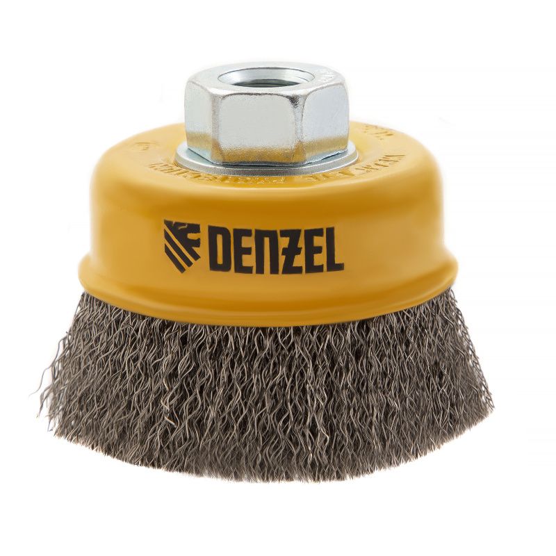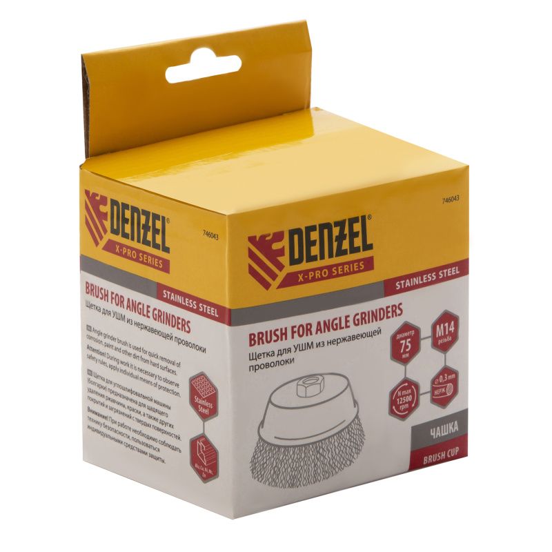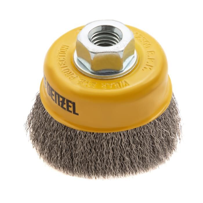 Щетка для УШМ, 75 мм, "Чашка", витая нержавеющая проволока 0.3 мм, М14 Denzel, 746043