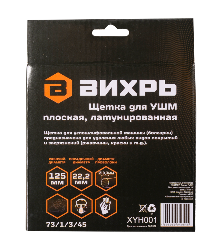| Модель | Щётка для УШМ плоская, латунированная, 125 мм |