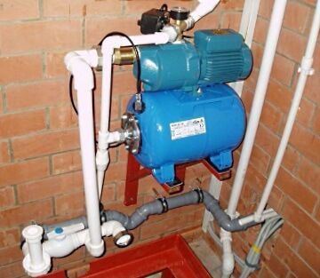 Первый тип насоса больше похож на поверхностный и работает синхронно с краном: при открытии включается и выключается при закрытии. Чаще всего они уже оснащены фильтром, имеют меньшие размеры. Станция водоснабжения с гидробаком работает по другому принципу и состоит из насоса поверхностной работы и гидроаккумулятора разного объёма помещаемой жидкости. Вода закачивается в бак до определённого уровня заранее, а после подается в кран при открытии. Пока не будет израсходовано нужное количество воды, поверхностный насос не станет докачивать её.