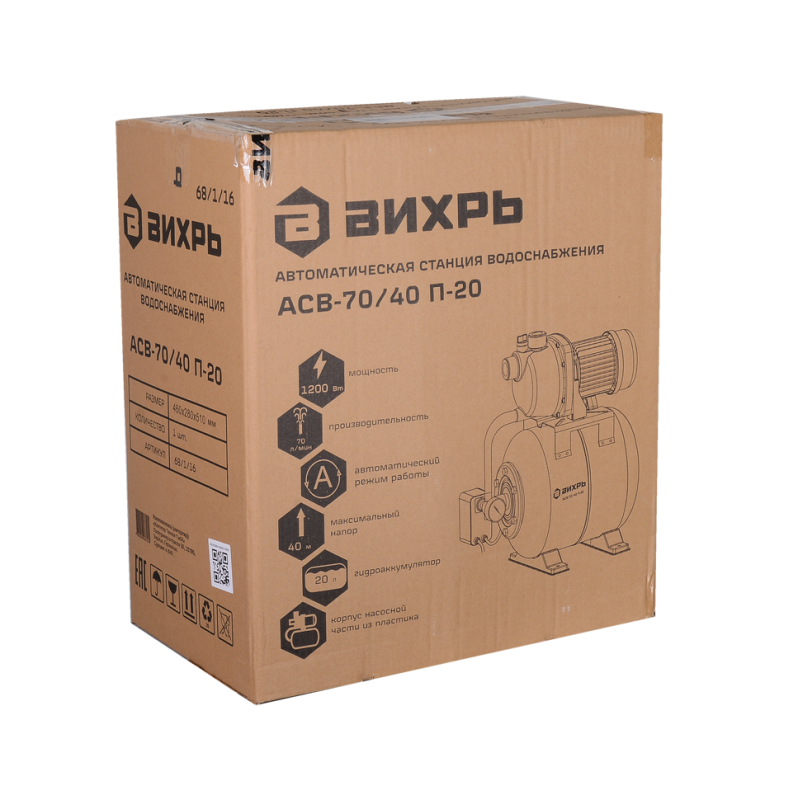 Автономная станция водоснабжения Вихрь АСВ-70/40 П-20, 68/1/16