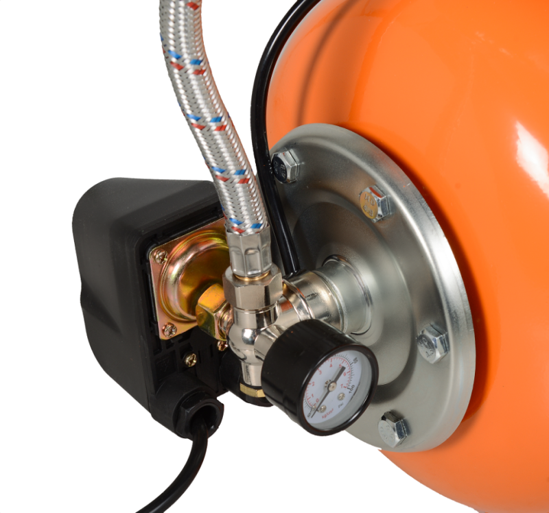 Компактный и эргономичный дизайн насосной станции позволяет установить ее в любом удобном месте. Благодаря встроенному гидробаку объемом 20 литров, станция обеспечивает стабильное давление и позволяет снизить количество включений и выключений насоса, что продлевает его срок службы.