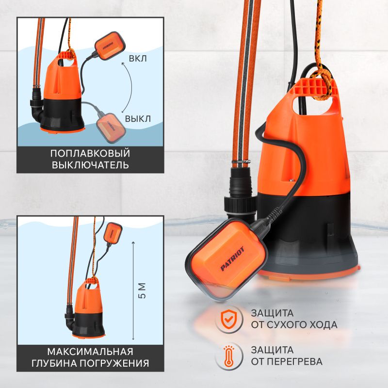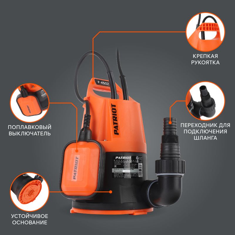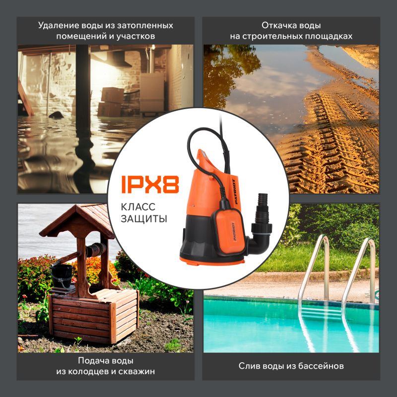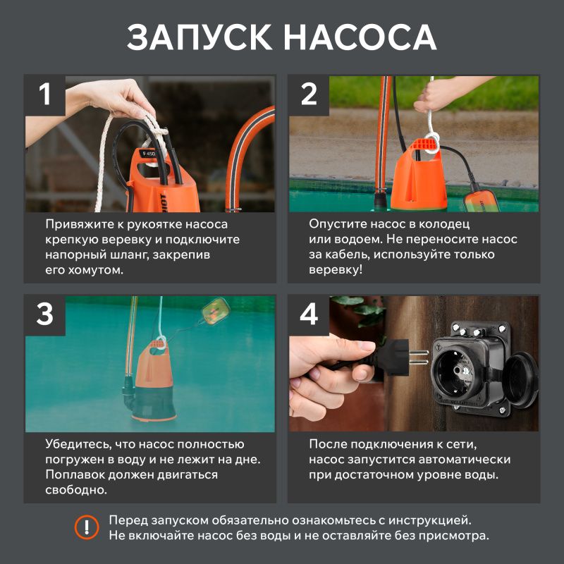 Регулируемое основание насоса позволяет использовать его как для чистой воды, так и для сильнозагрязненной. Остаточный уровень воды до 1 мм.