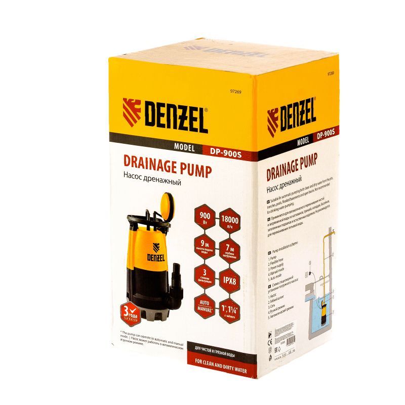 Дренажный насос для чистой и грязной воды Denzel DP900S, 97269