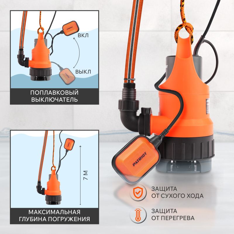 Регулируемое основание насоса позволяет использовать его как для чистой воды, так и для сильнозагрязненной. Остаточный уровень воды 5-7 мм.<br />