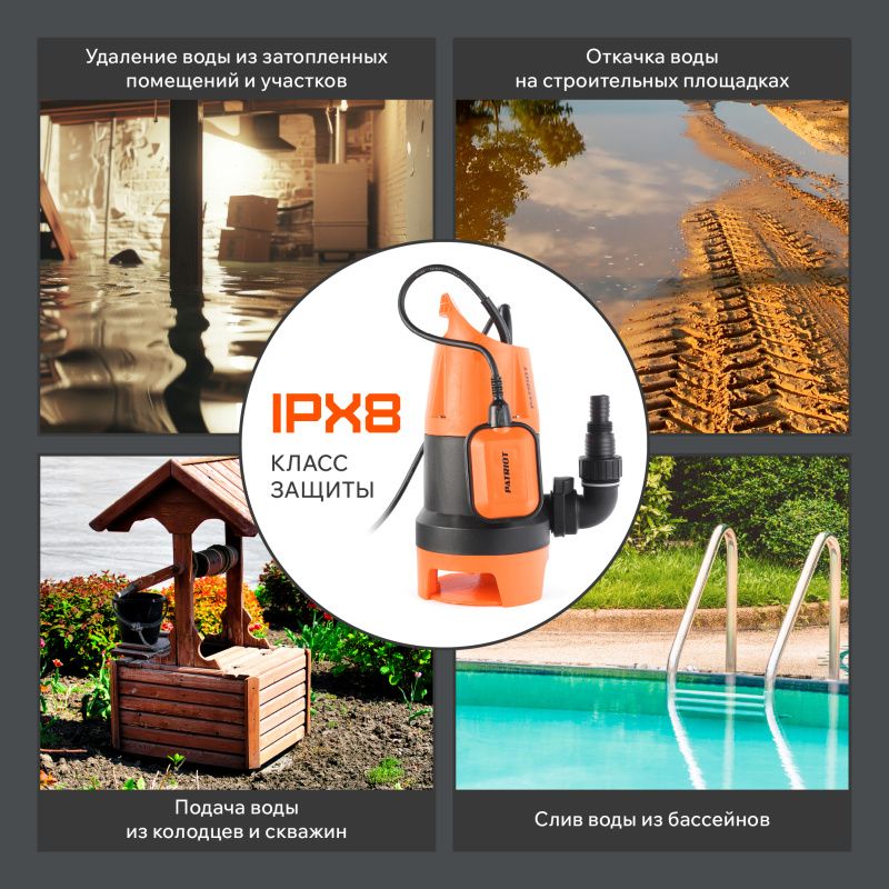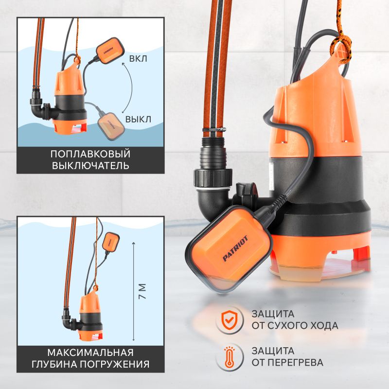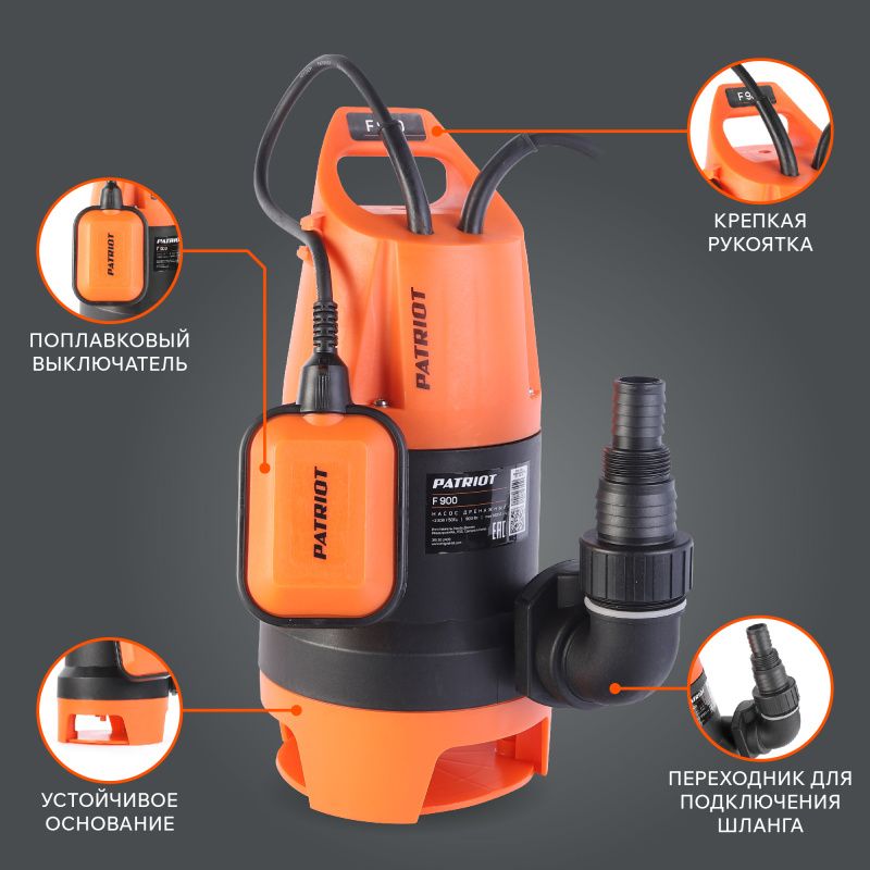 Погружной дренажный насос Патриот Ф 900, имеет следующие преимущества: