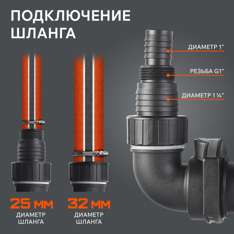 | Диаметр шланга, мм | 25 и 32 |