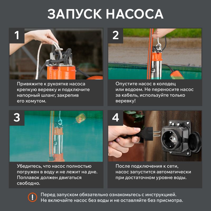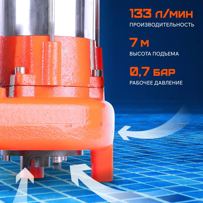 В комплекте с насосом поставляется штуцер подключения шланга, что позволяет использовать его сразу после покупки. Также в комплект входит сетевой шнур длиной 8 метров, что обеспечивает удобство подключения к источнику питания.