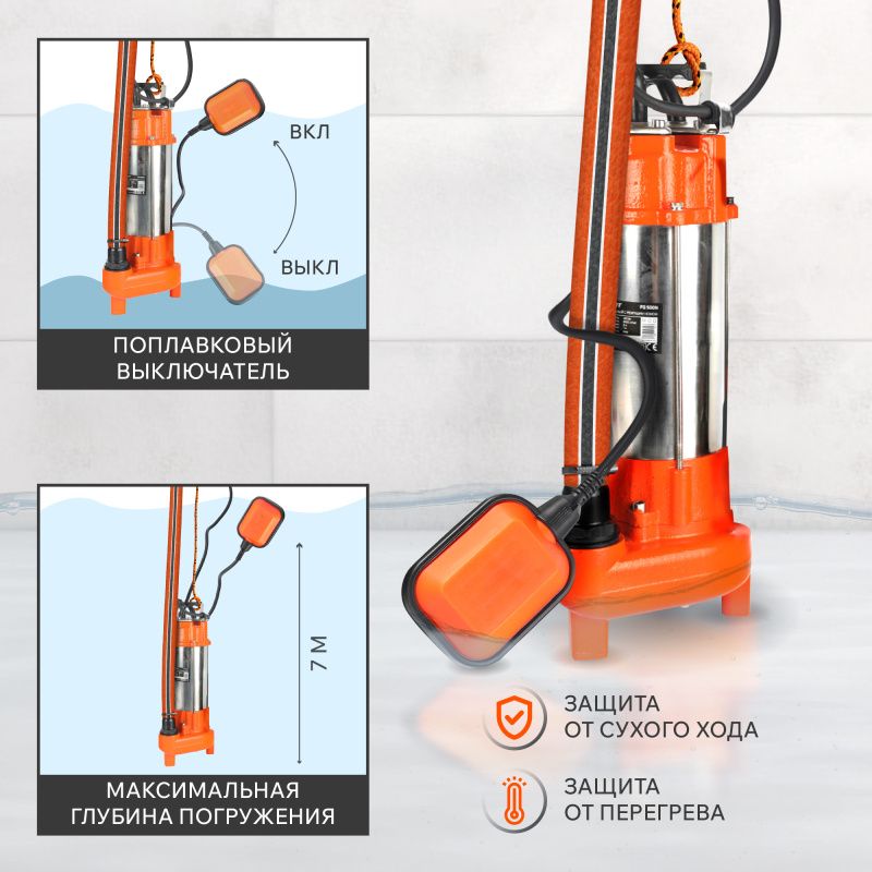 Погружной фекальный насос Patriot FQ 500N оснащен автоматической системой защиты от перегрева, что обеспечивает безопасность его эксплуатации. Кроме того, он имеет встроенный поплавковый выключатель, который автоматически отключает насос при достижении определенного уровня жидкости.
