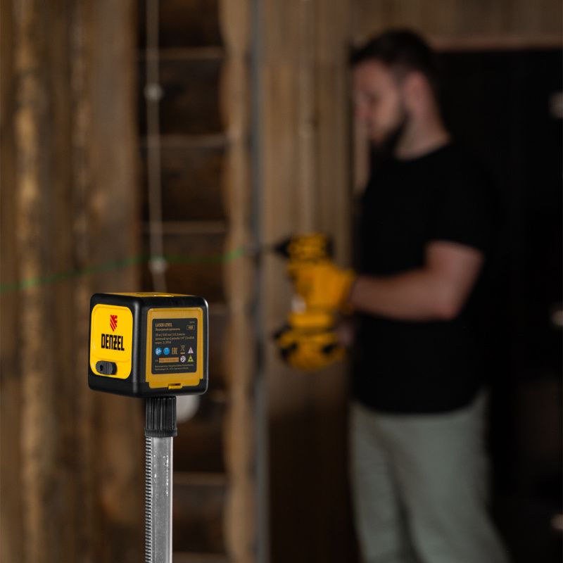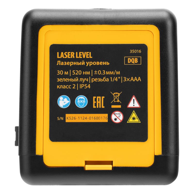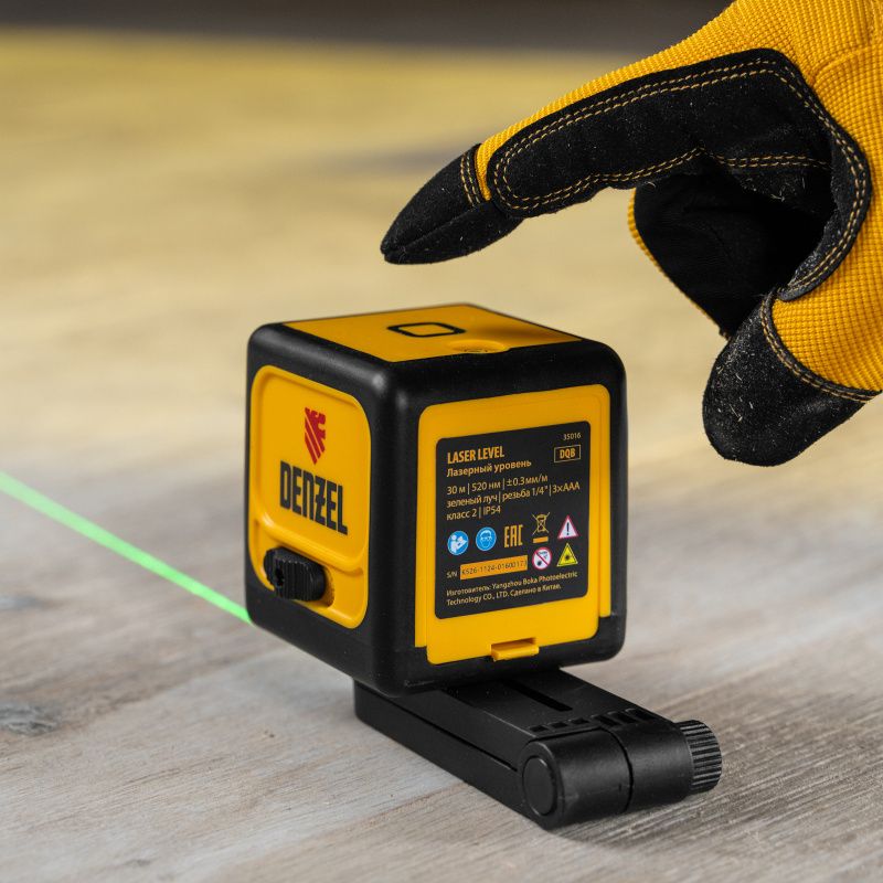 Лазерный уровень DQB, 30 м, зеленый луч, батарейки, сумка Denzel, 35016