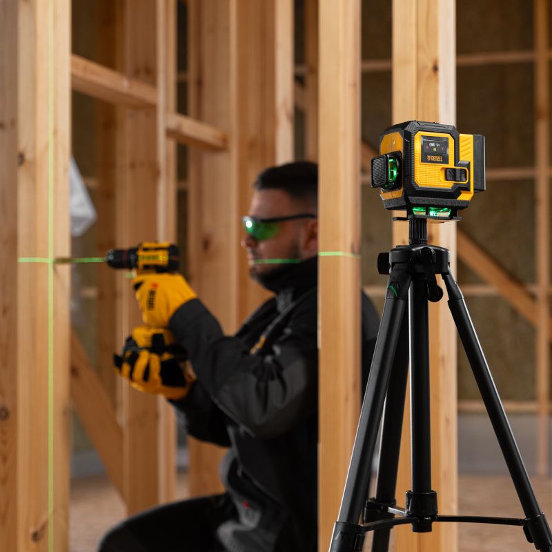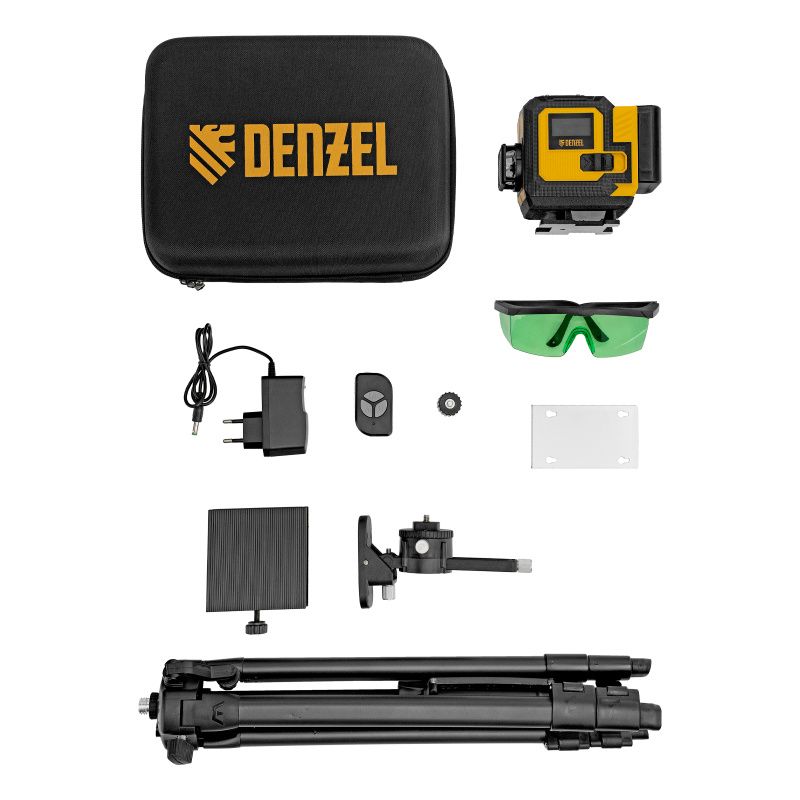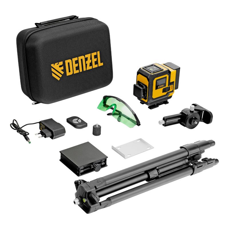 Лазерный уровень мультипризменный DLV-360-3T, 30 м, зеленый луч, Li-Ion 2,4 Aч, штатив // Denzel, 350805