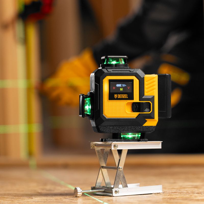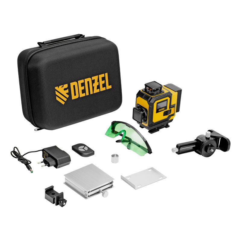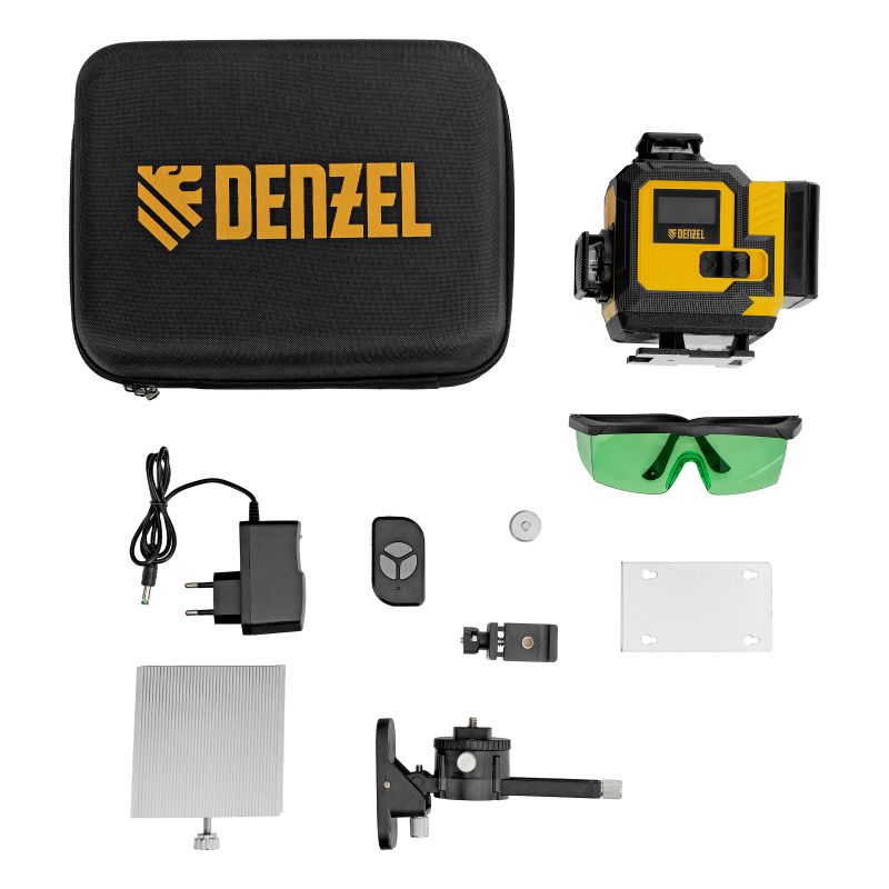Лазерный уровень мультипризменный DLV-360-4C, 30 м, зеленый луч, Li-Ion 2,4 Aч, кейс// Denzel, 35081