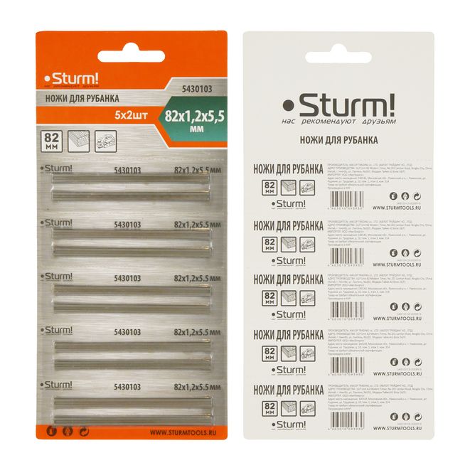 Ножи для рубанка, 82x1,2x5.5мм, 10 шт, универсальные, Sturm, 5430103