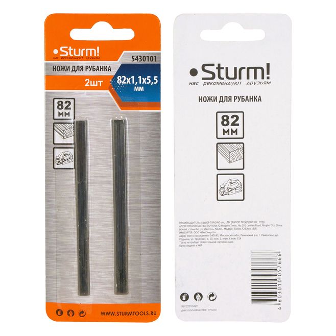Ножи для рубанка, 82x1,2x5.5мм, 2 шт, универсальные, Sturm, 5430101