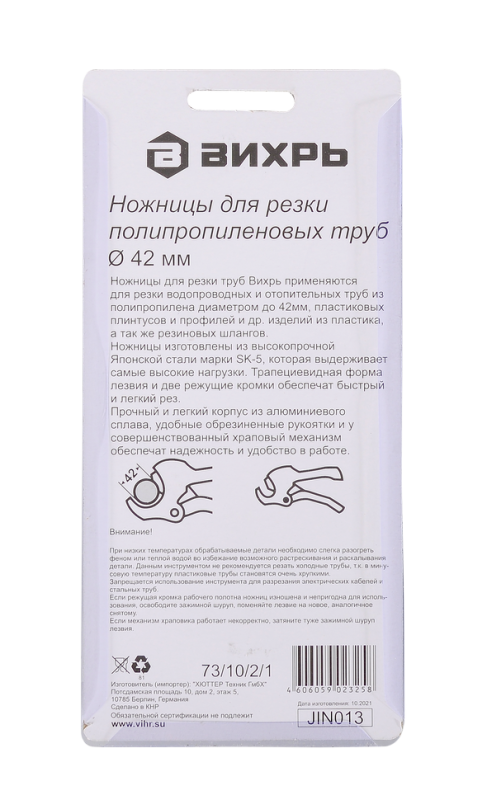 Ножницы для ПВХ труб ВИХРЬ, 73/10/2/1