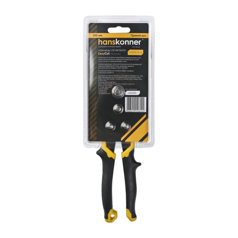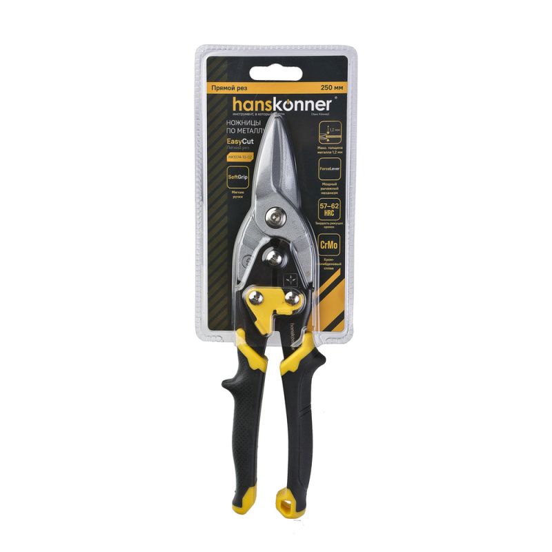 Ножницы по металлу, 250 мм, прямой рез, СrMо, Hanskonner, HK1074-10-02