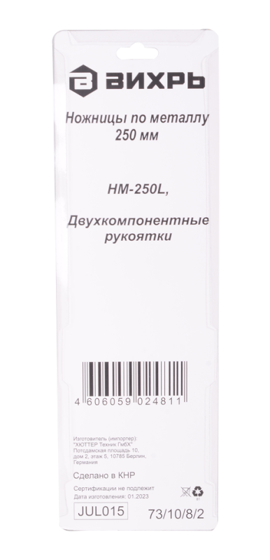 Ножницы по металлу 250 мм., НМ-250L, левый рез, Вихрь, 73/10/8/2