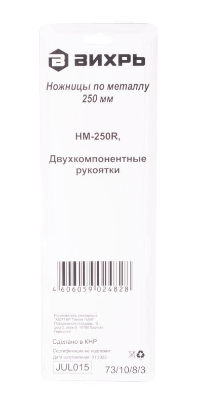 Ножницы по металлу 250 мм., НМ-250R, правый рез, Вихрь, 73/10/8/3