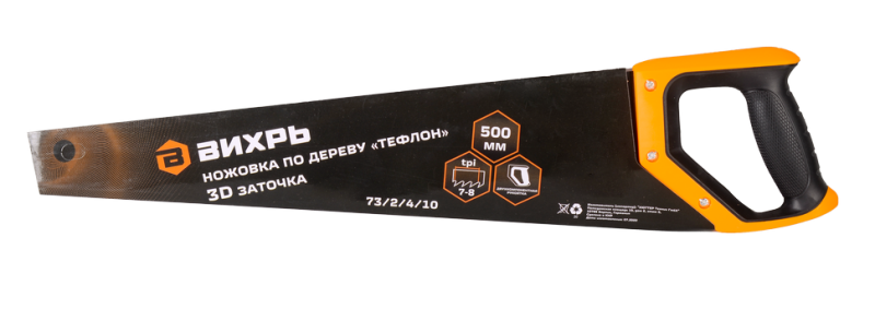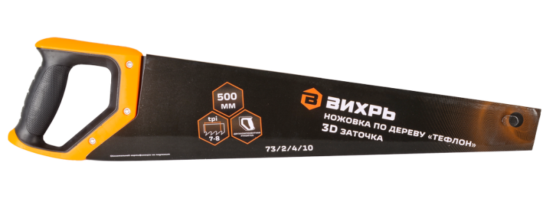 Ножовка ВИХРЬ 500 мм "Тефлон" 3D заточка, 73/2/4/10