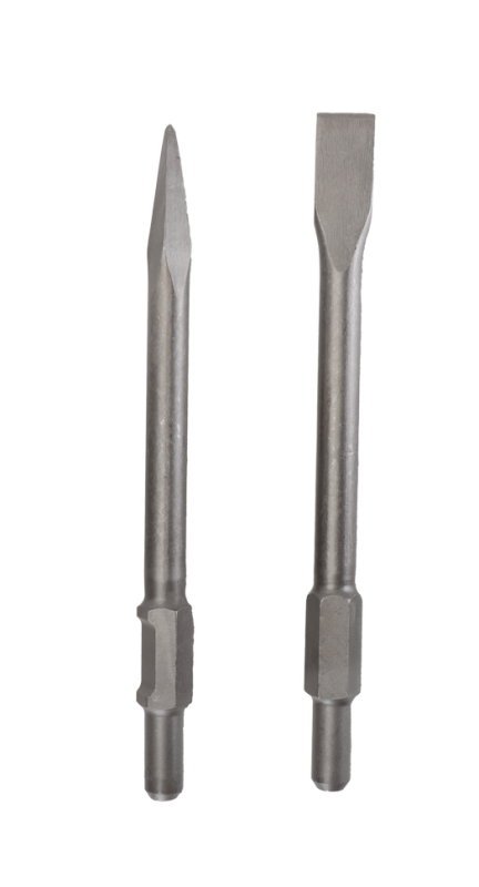 Плоская насадка предназначена для демонтажа стен и перегородок, а зубчатая - для разрушения бетона и кирпича. Благодаря этому отбойный молоток можно использовать для различных задач и получать отличные результаты.