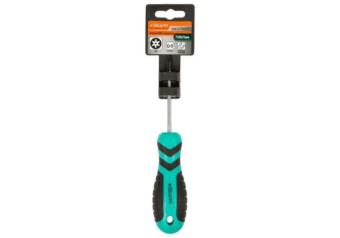 Отвертка TORX TT15H*75мм, с отверстием, CrV магнитный наконечник Sturm, 1040-23-TT15-75