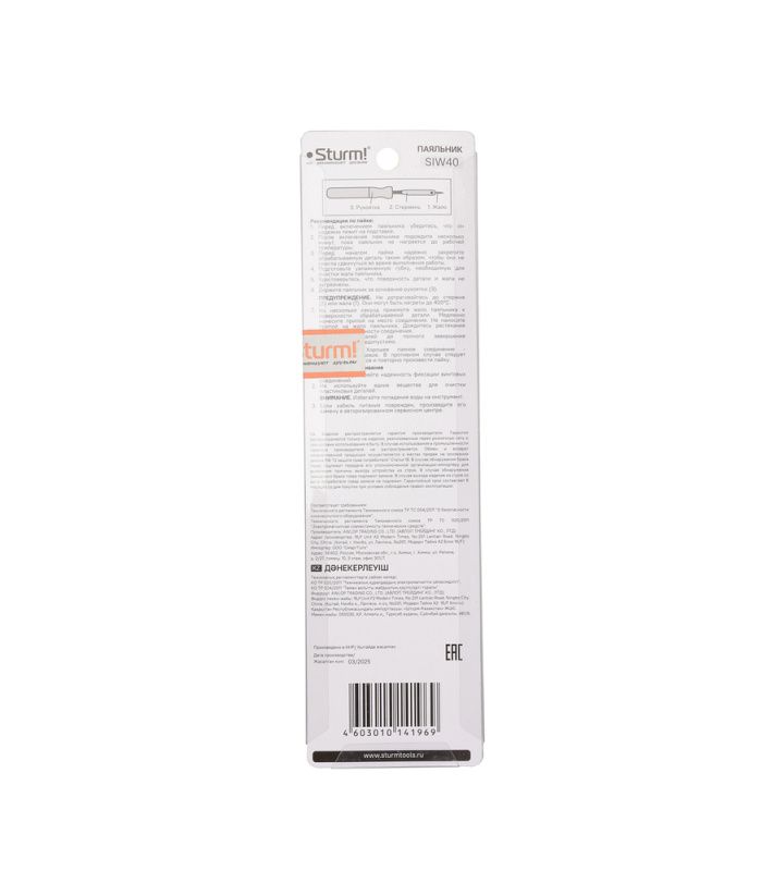 Электропаяльник 40ВТ, ДЕРЕВЯННАЯ рукоятка, Sturm PROMO, SIW40