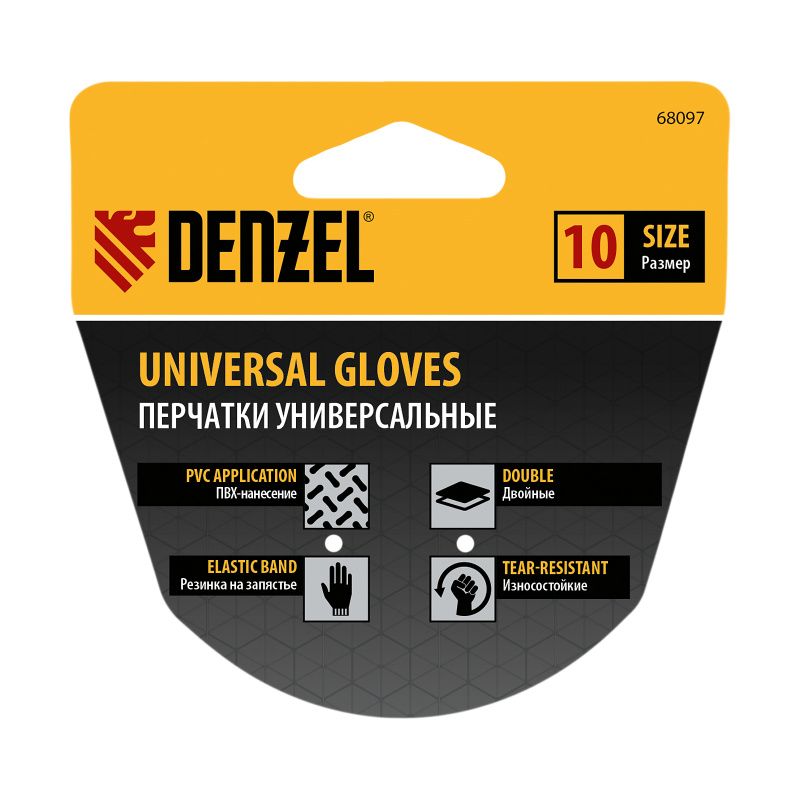 Перчатки универсальные, двойные, ПВХ нанесение, размер 10 Denzel, 68097